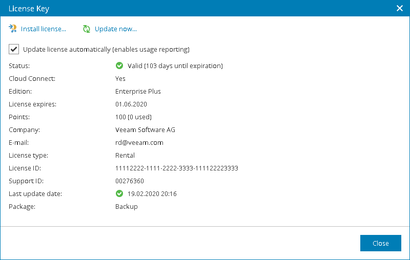 - When a new license becomes available, Veeam Service Provider Console automatically downloads and installs it to replace the old license.