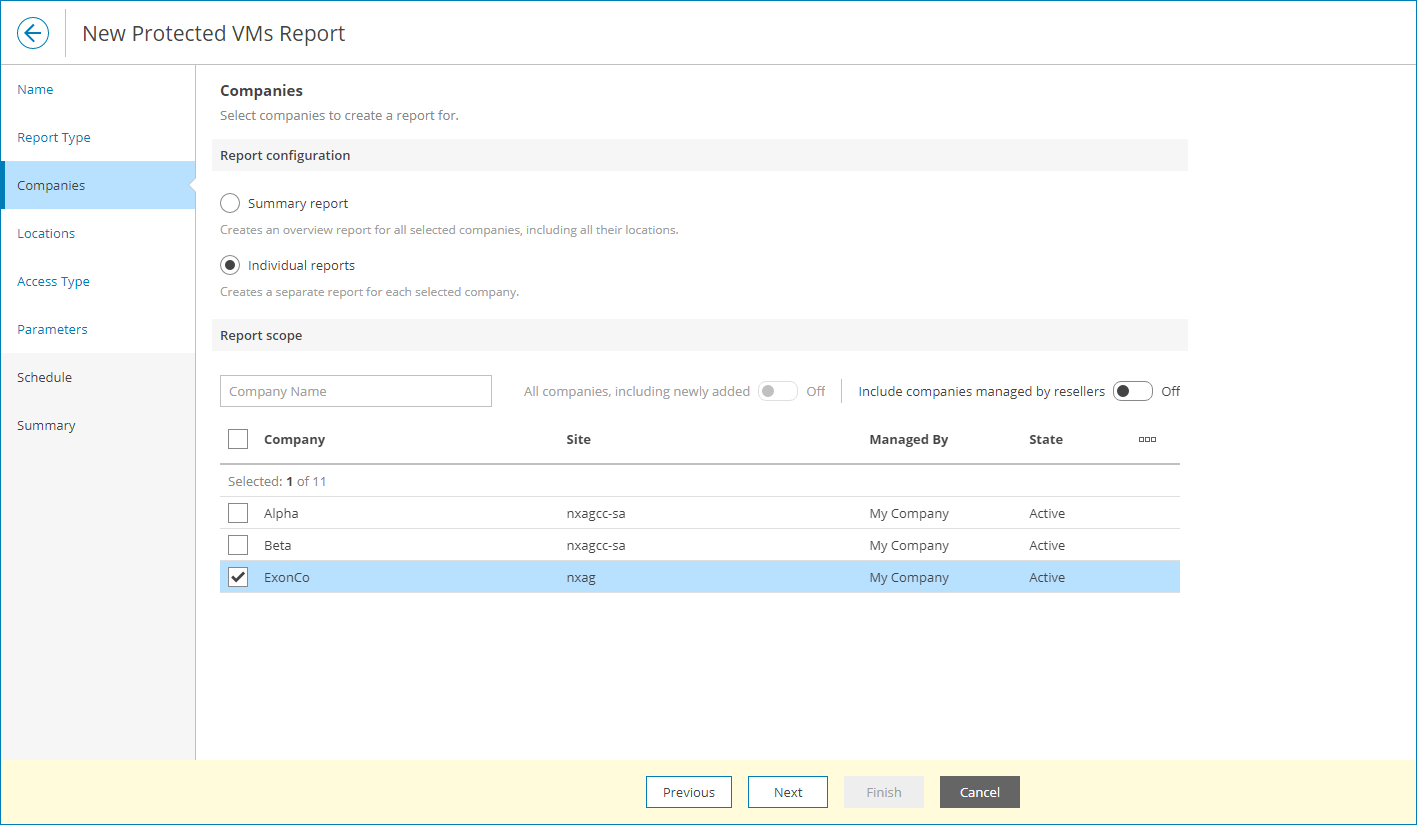 - At the Companies step of the wizard, choose Individual reports and select the client company you configured at the Register Account for Managed Company step.