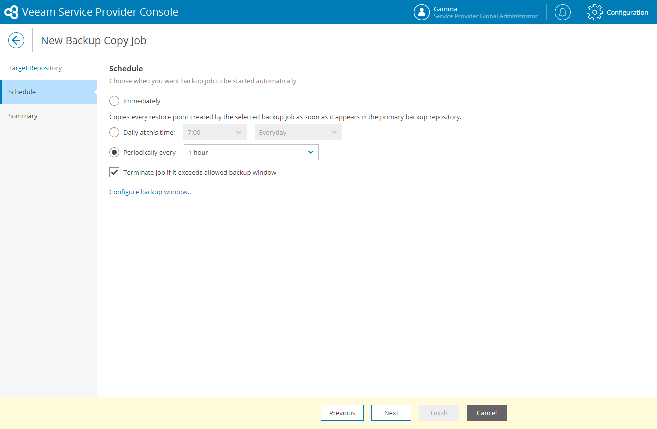 1. Select the Terminate job if it exceeds allowed backup window check box and click Configure backup window.