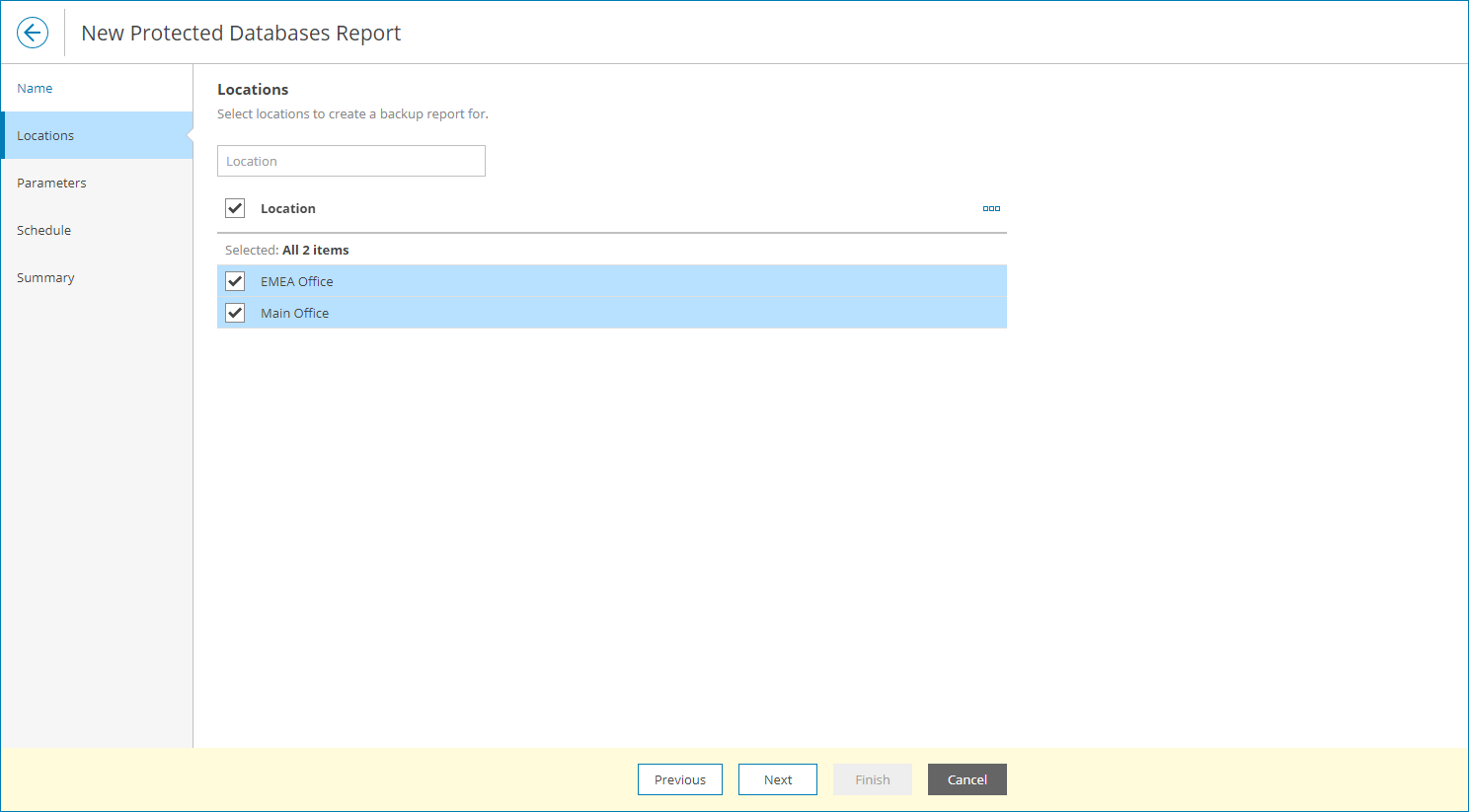 By choosing a location you can limit the scope of the report: only databases that belong to the chosen locations will appear in the report.