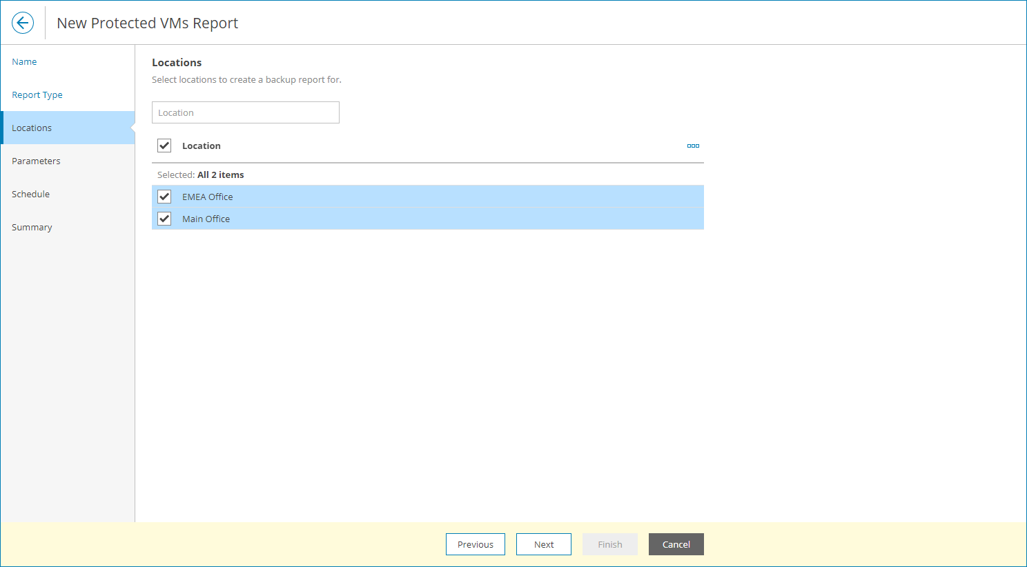 By choosing a location you can limit the scope of the report: only VMs that belong to the chosen locations will appear in the report.