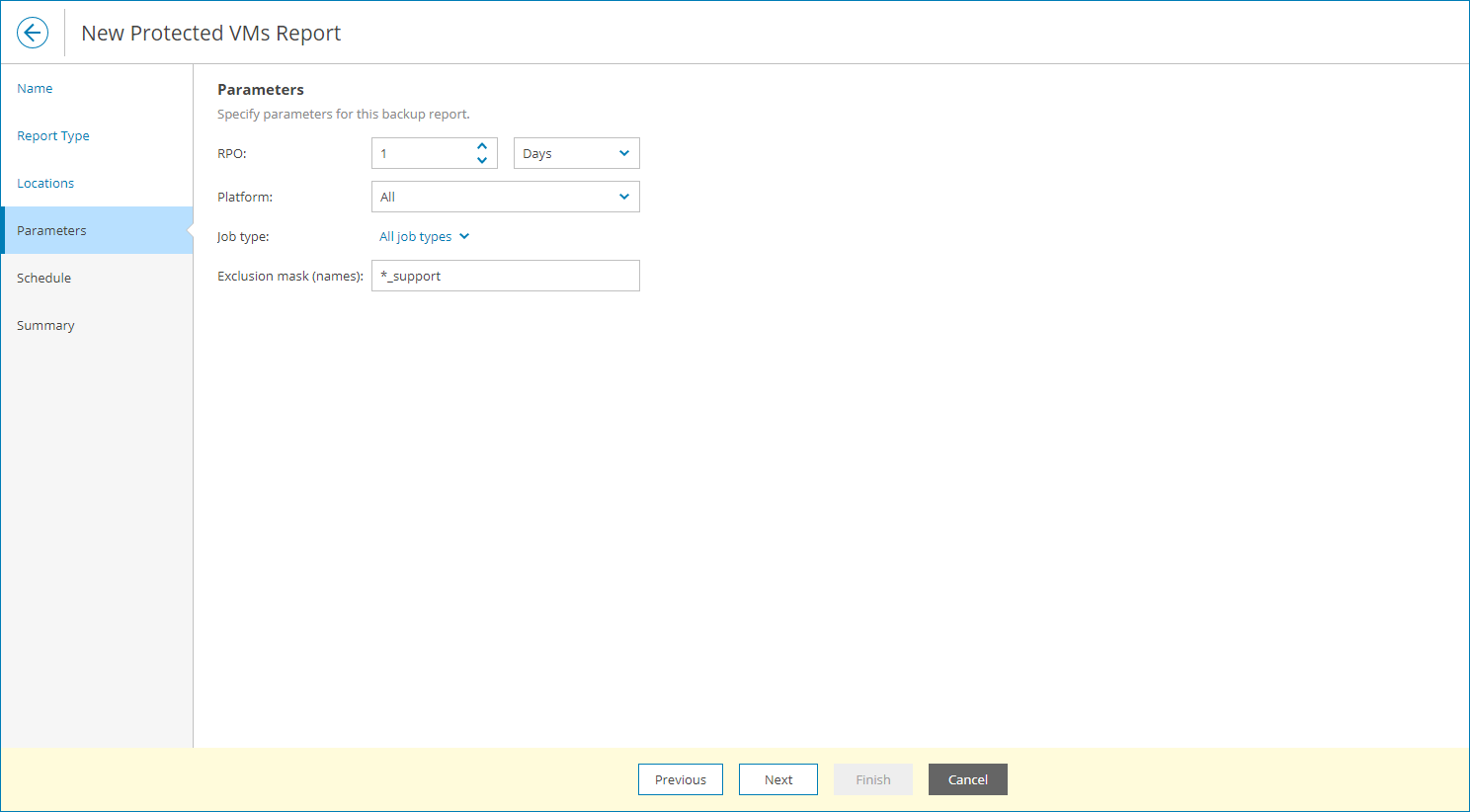- In the Exclusion mask (names) field, specify a mask for excluding VMs from the report scope.