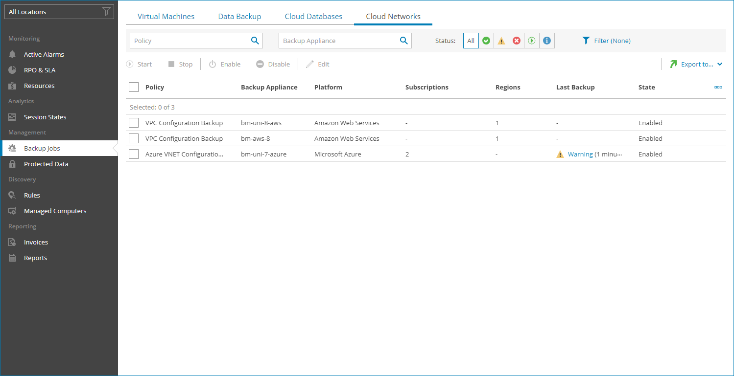 Veeam Service Provider Console will display a list of all cloud backup policies.