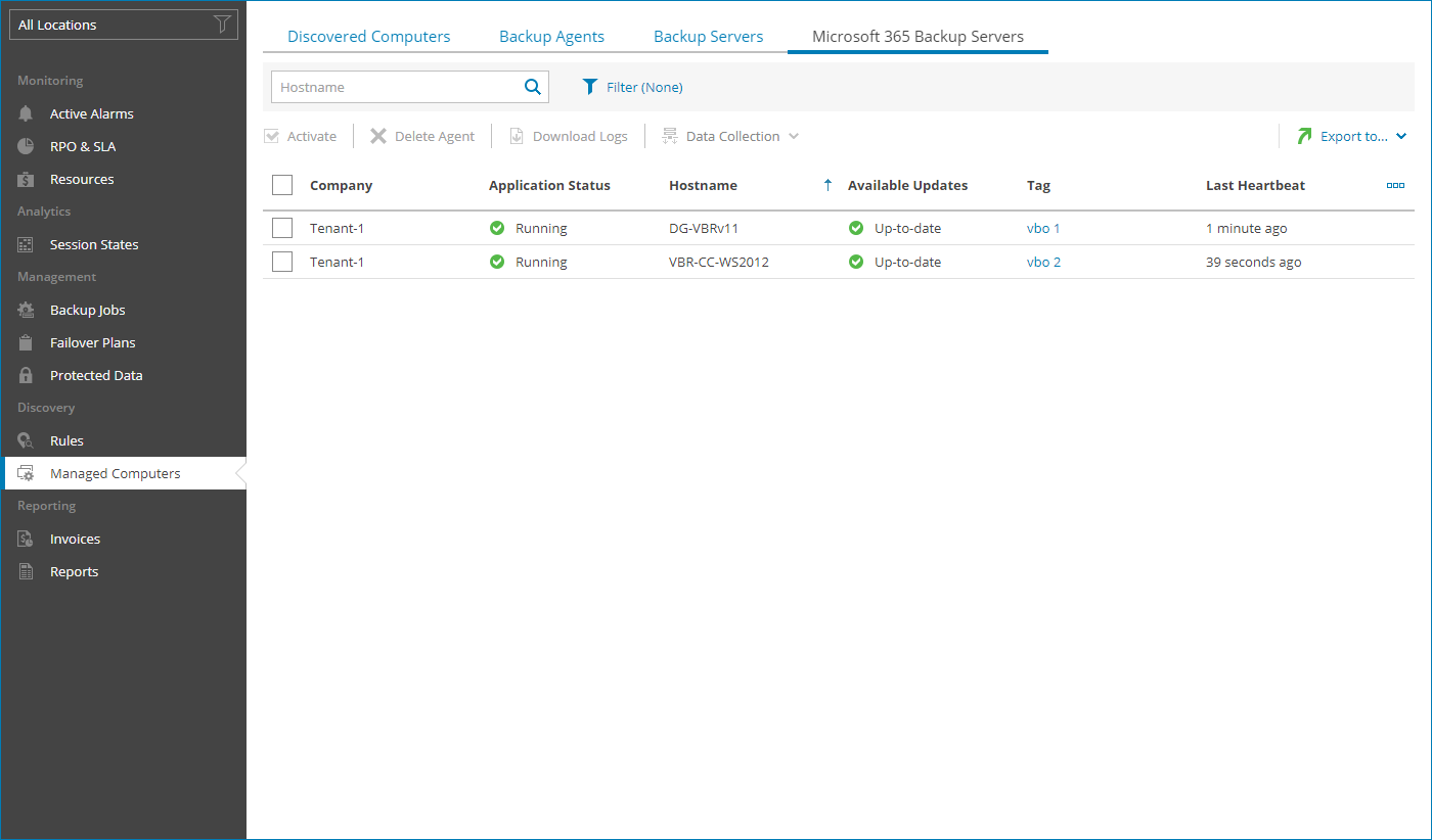 Veeam Service Provider Console will display a list of all managed Veeam Backup for Microsoft 365 servers.
