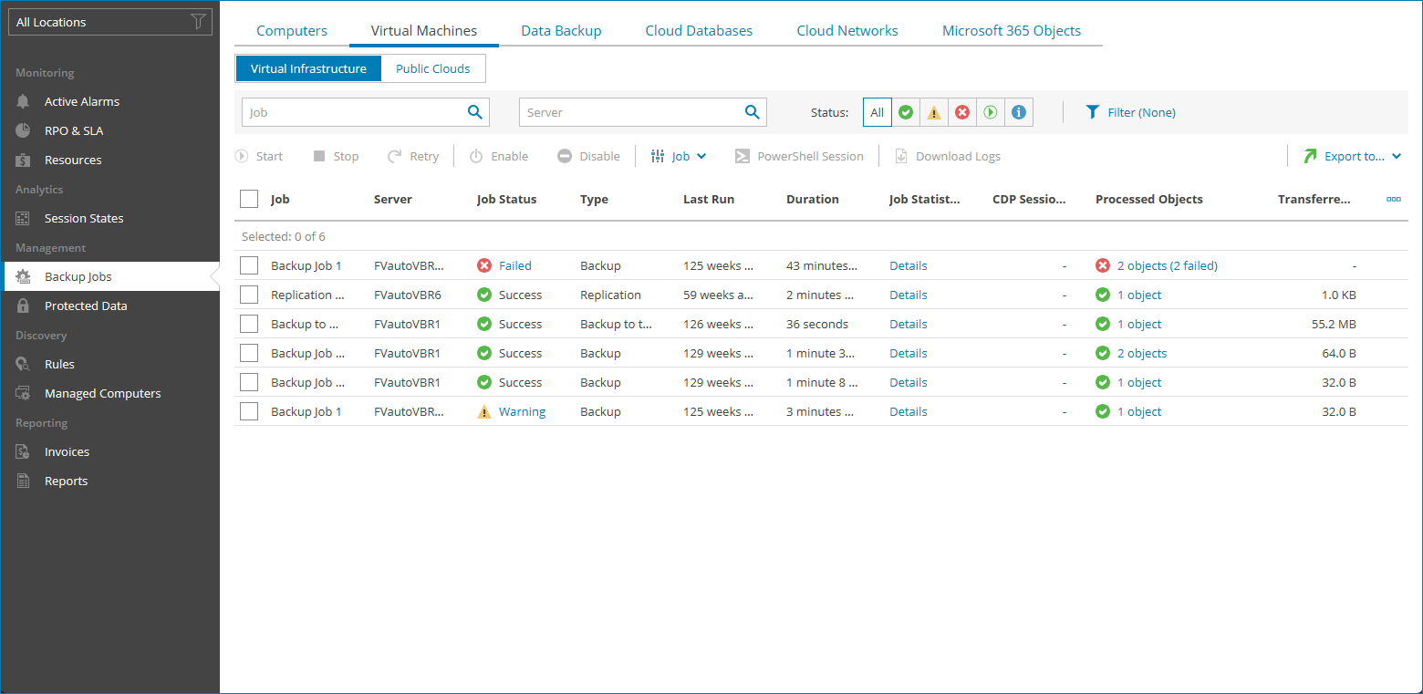 Veeam Service Provider Console will display a list of all VM jobs configured on managed backup servers.