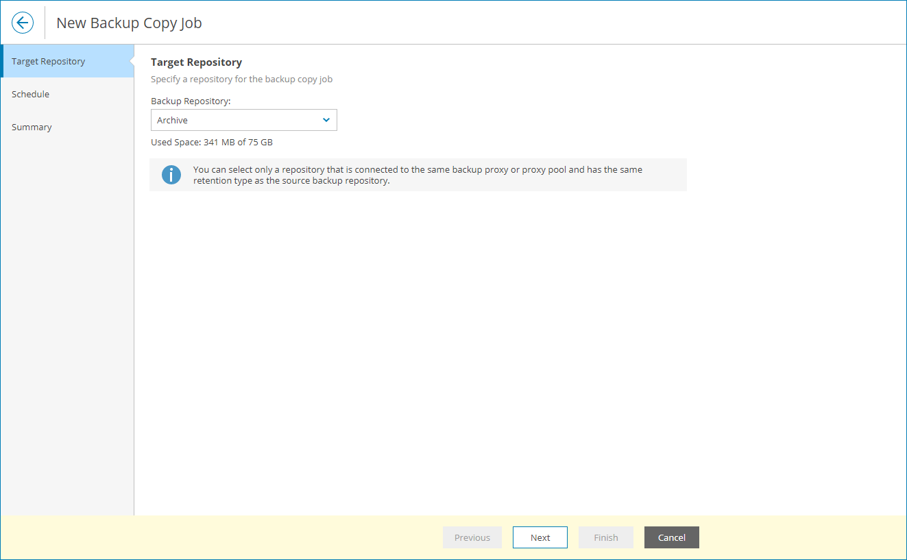 At the Target Repository step of the wizard, select target backup repository from the list.