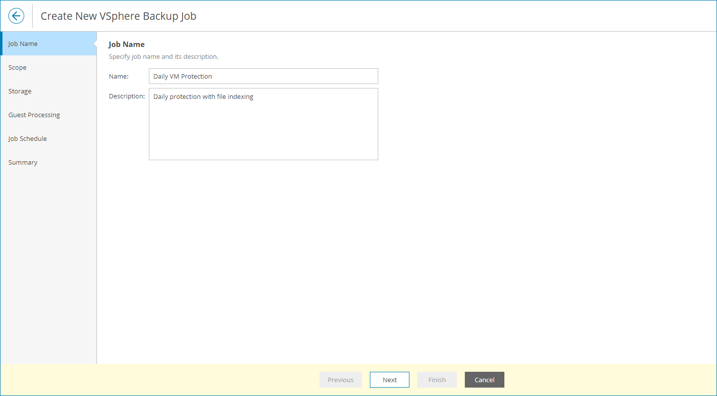 At the Job Name step of the wizard, specify job name and description.