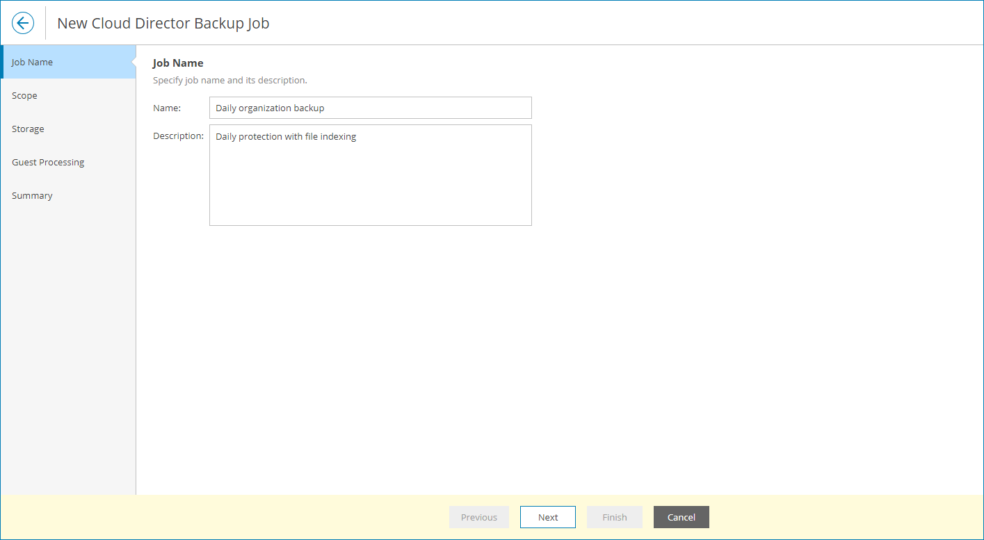 This is an archive version of the document. To get the most up-to-date information, see the current version. Step 2. Specify Job Name and Description At the Job Name step of the wizard, specify job name and description.