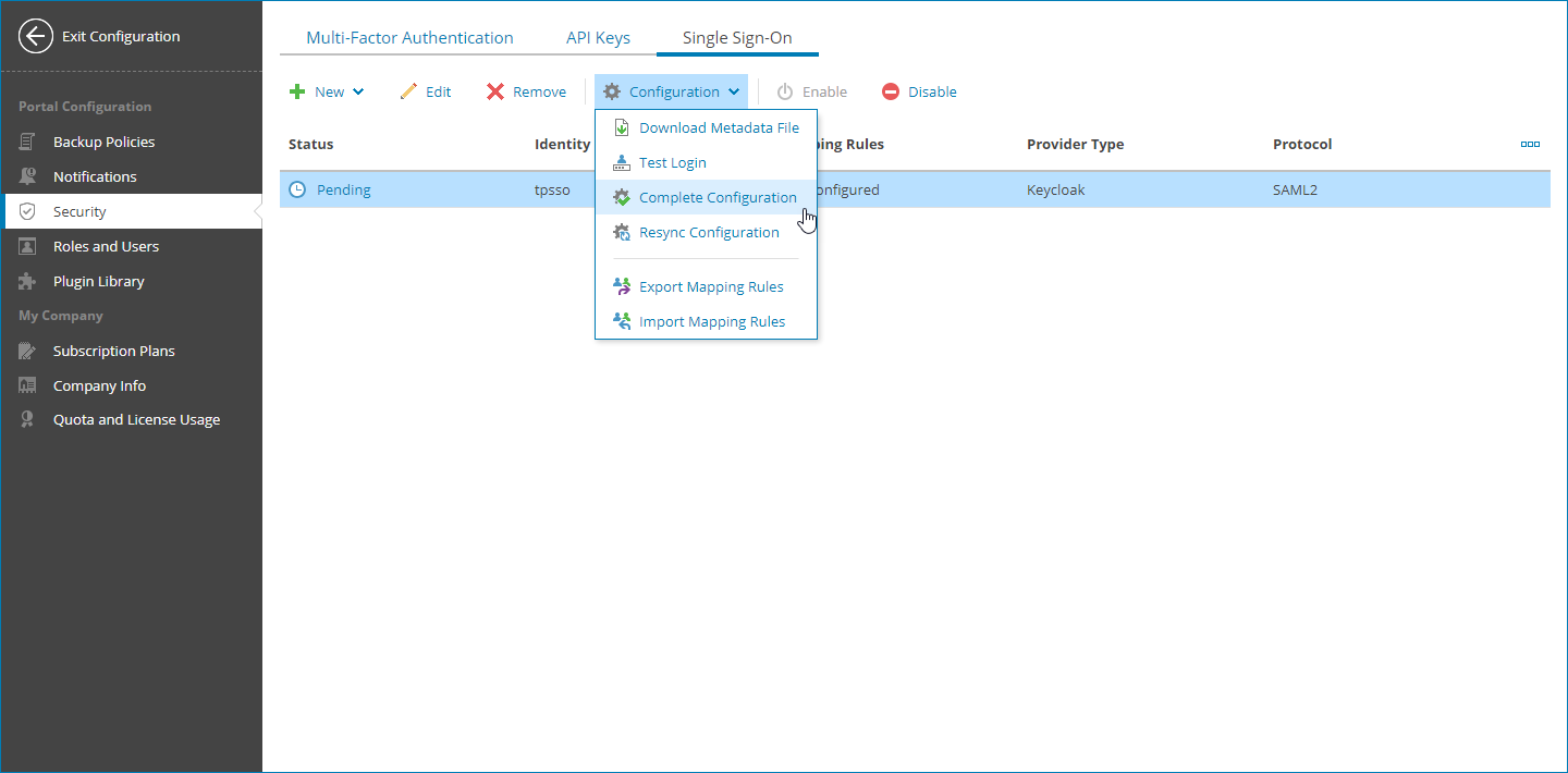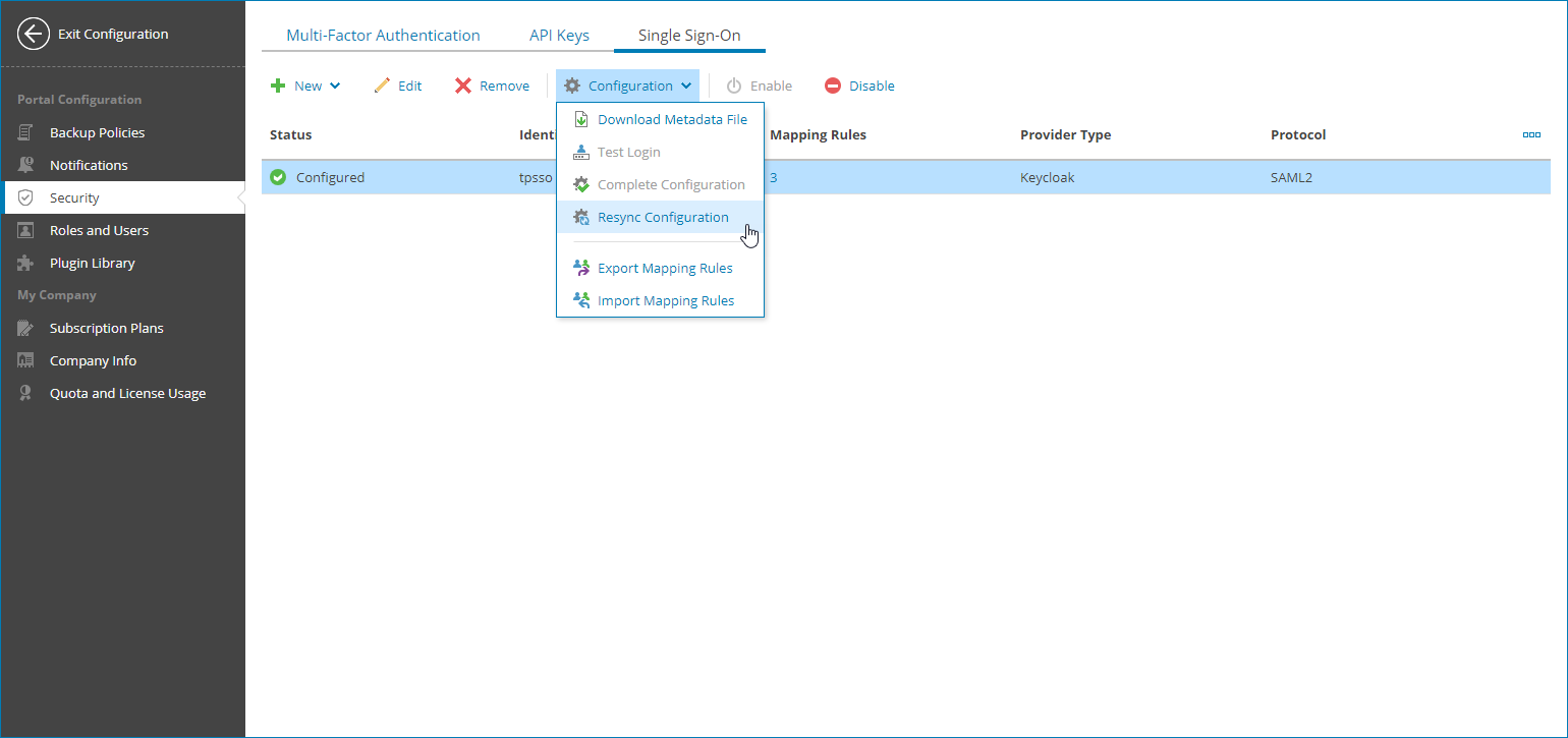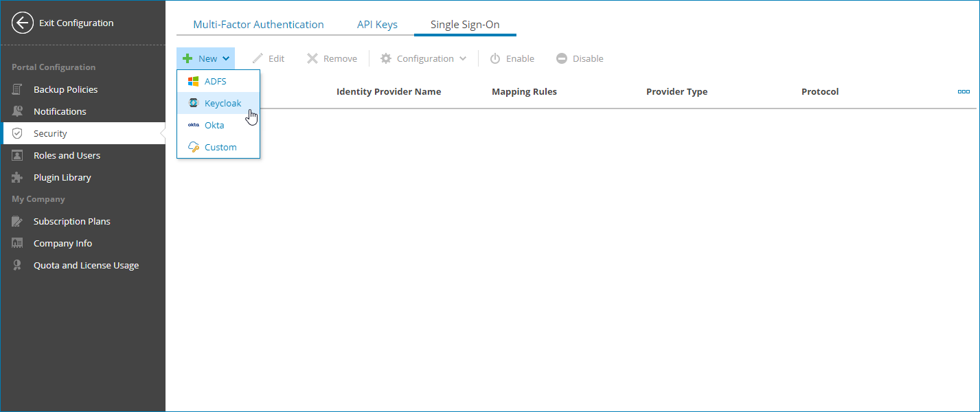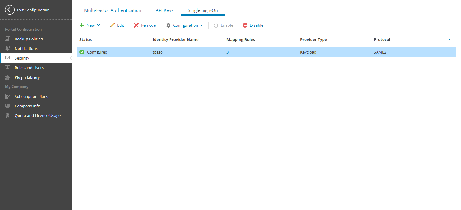 Veeam Service Provider Console allows you to create and manage IdP configurations to set up SSO authentication.