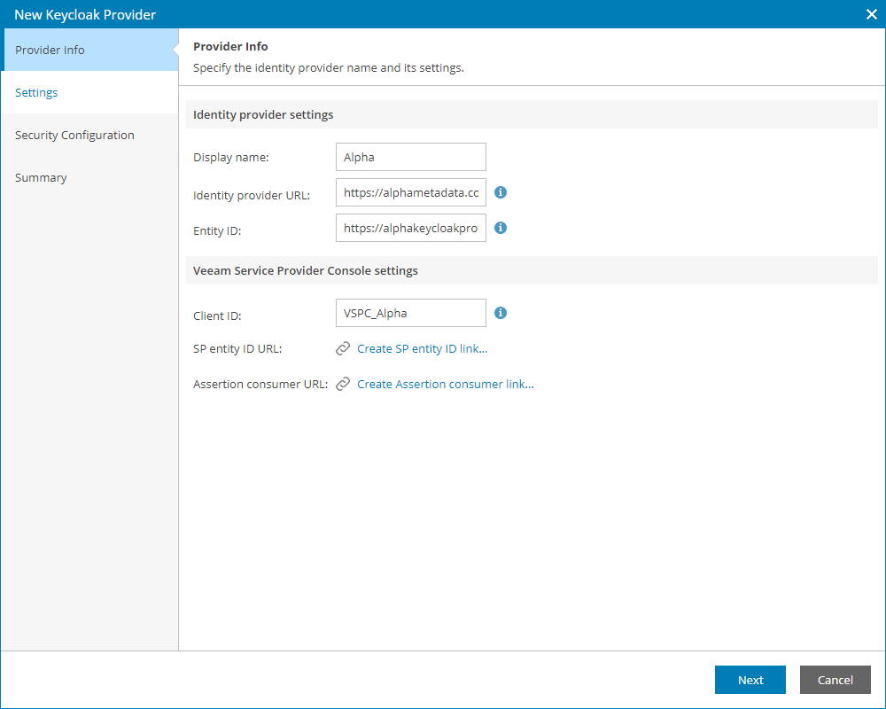 - In the Client ID field, specify the name of the client created for Veeam Service Provider Console on the IdP side.