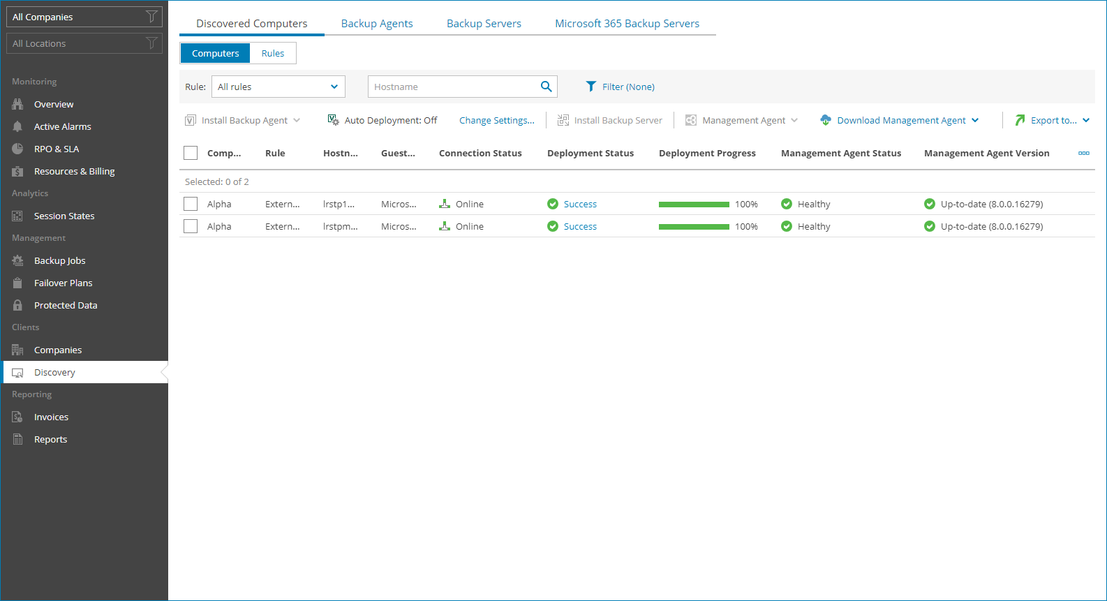 - In the menu on the left, click Discovery (for Service Provider Global Administrator, Service Provider Administrator) or Managed Computers (for Service Provider Operator, Service Provider User).