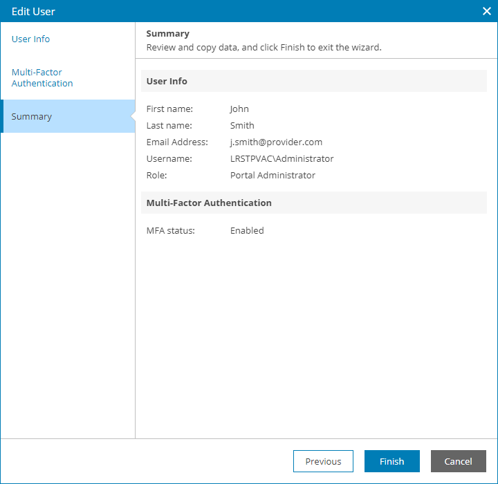 - If you want to enable multi-factor authentication for your user account, on the Multi-Factor Authentication step of the wizard, do the following: