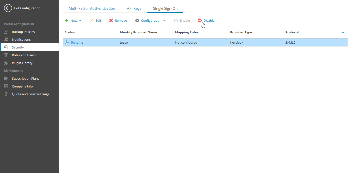 Veeam Service Provider Console allows you to create and manage IdP configurations to set up SSO authentication.