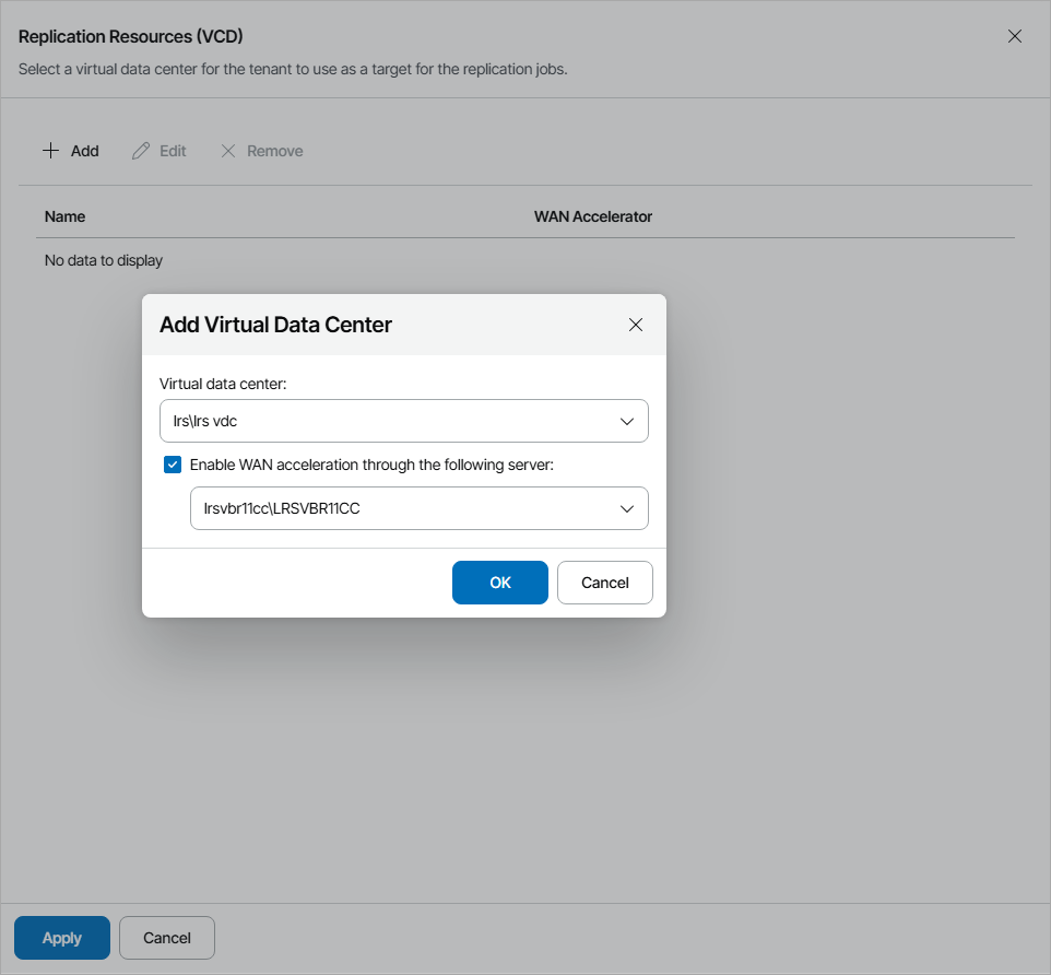 In the Replication Resources window, you can allocate replication resources to the cloud tenant: