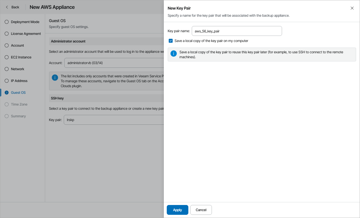 Veeam Service Provider Console will open the New AWS Appliance wizard.