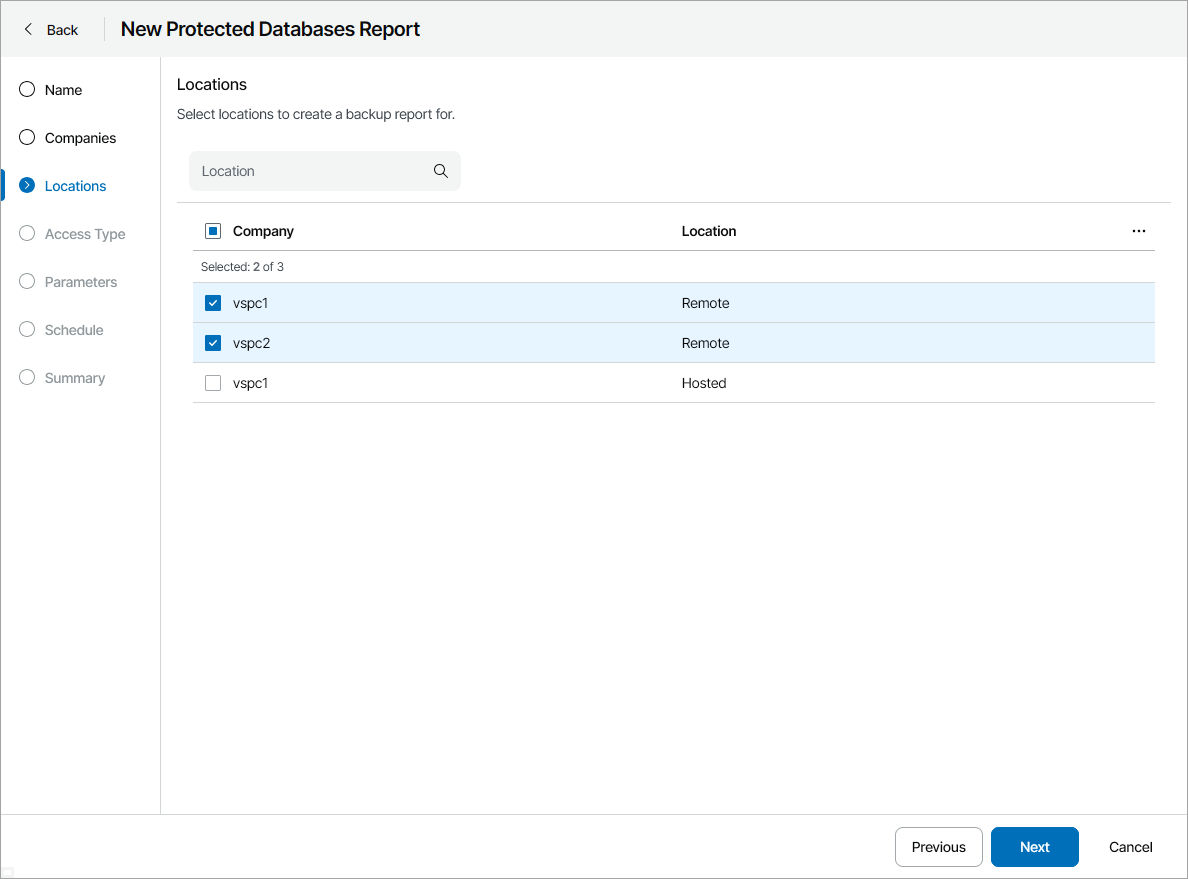 If you select more than one company for Individual reports report type, Veeam Service Provider Console will create a separate report configuration for each selected company. If you select more than one company for Summary report report type, Veeam Service Provider Console will include data on all selected companies in the report.