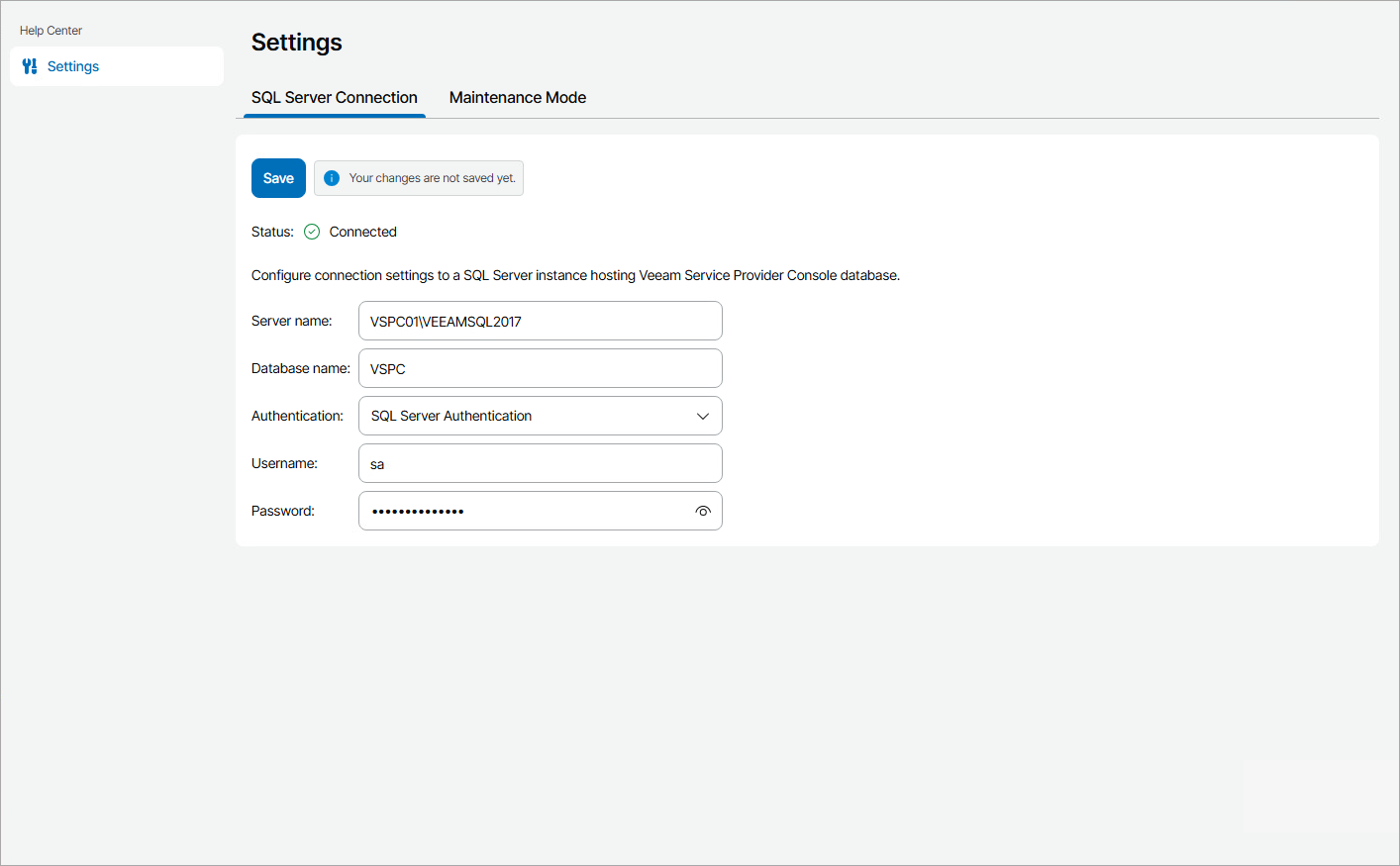 Veeam Service Provider Console will connect to the specified database, and will automatically disable the maintenance mode.