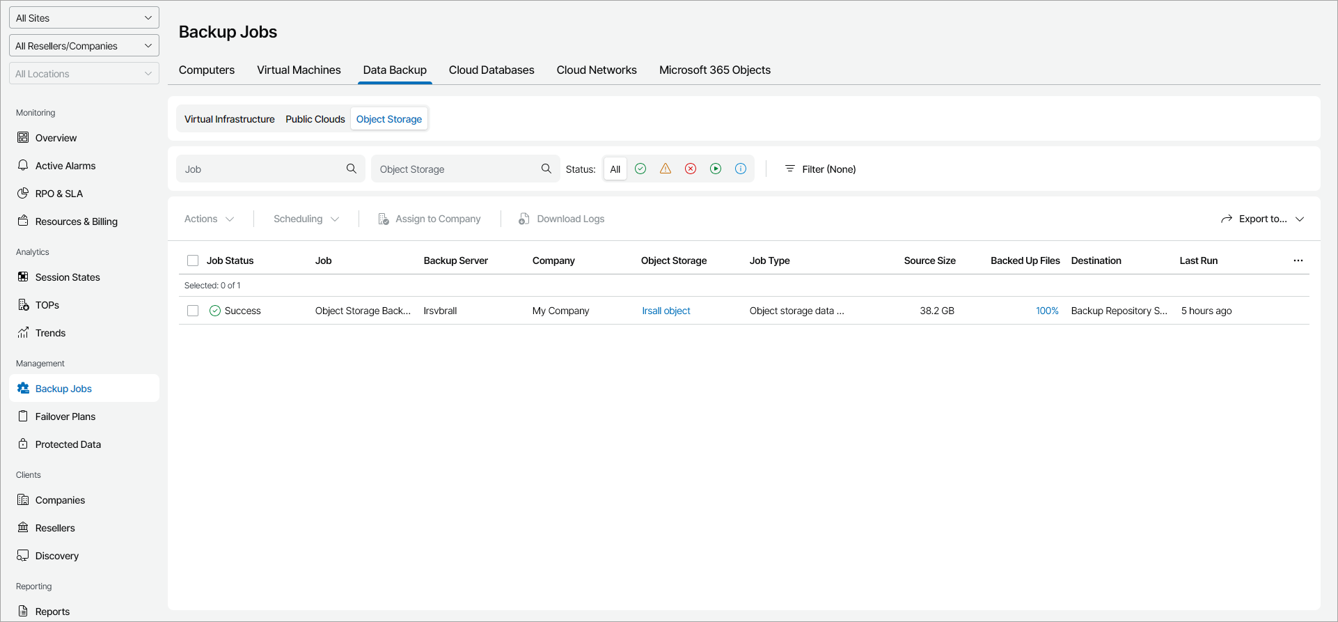 Veeam Service Provider Console will display a list of all data protection jobs configured on managed backup servers.
