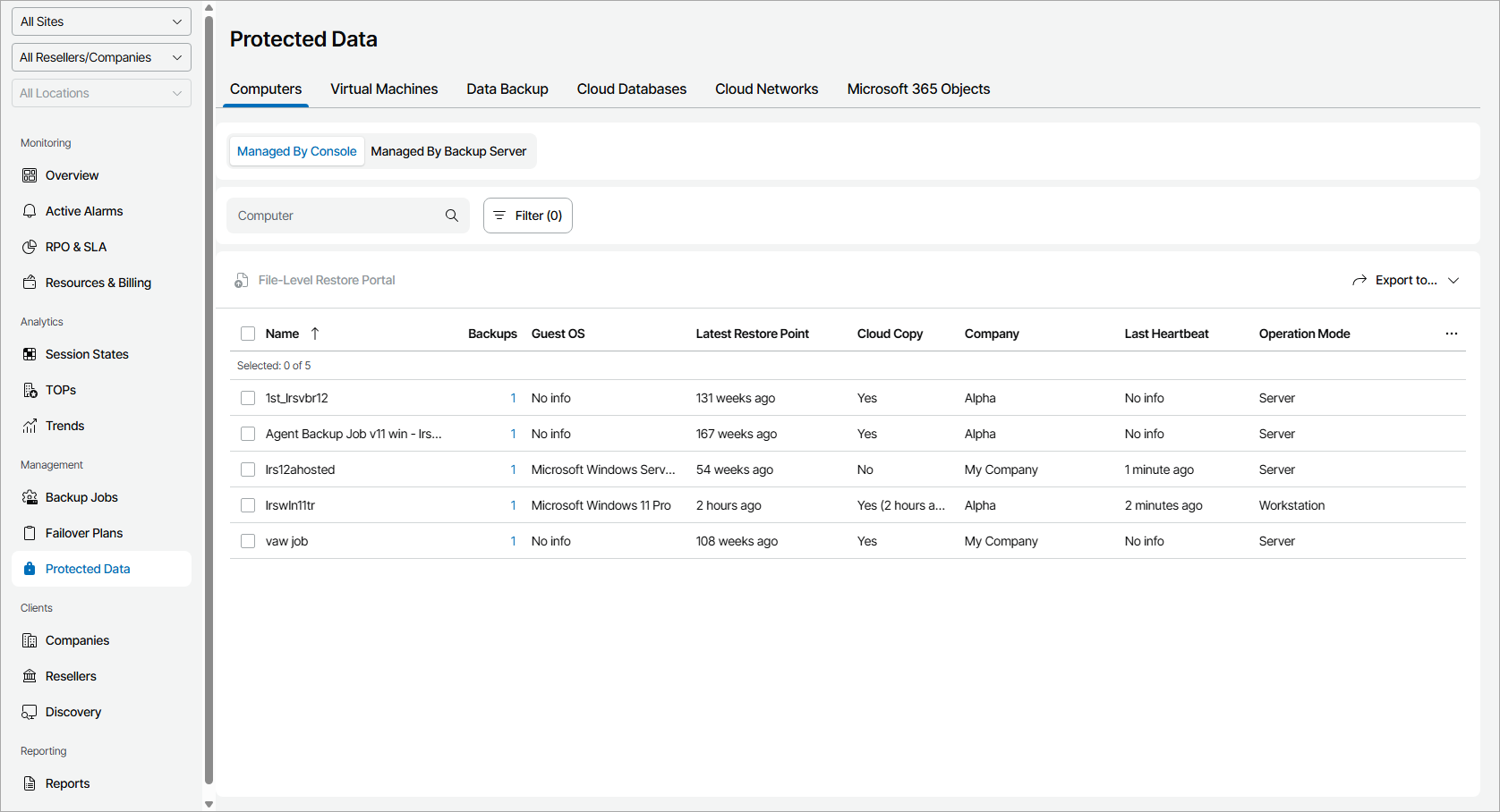 Veeam Service Provider Console will display a list of all managed computers that have at least one finished Veeam backup agent job.