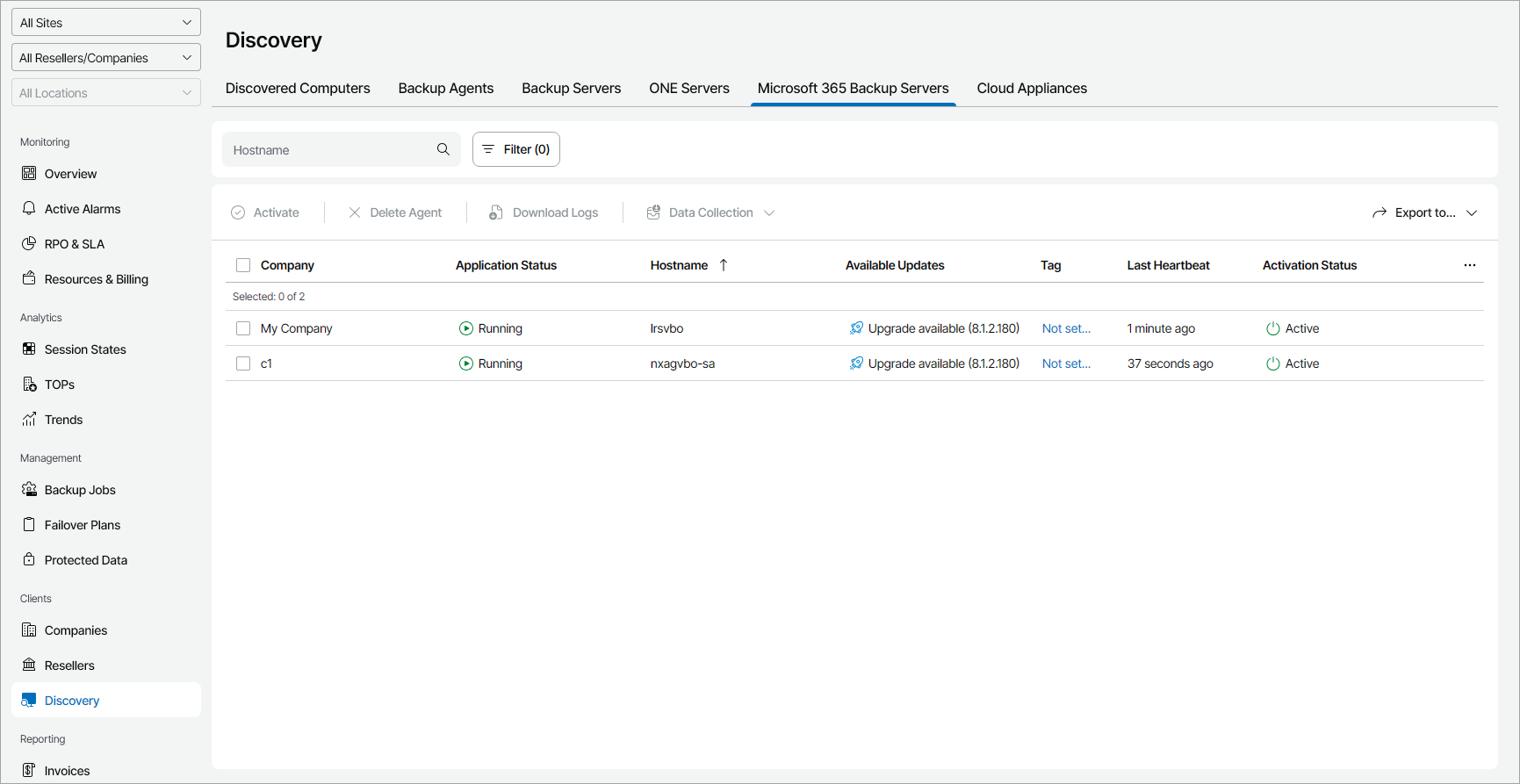 Veeam Service Provider Console will display a list of all managed Veeam Backup for Microsoft 365 servers.