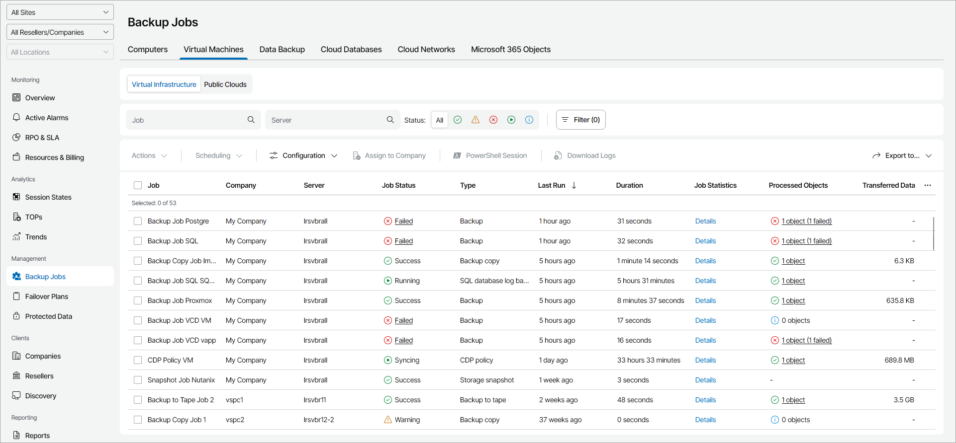 Veeam Service Provider Console will display a list of all VM jobs configured on managed backup servers.