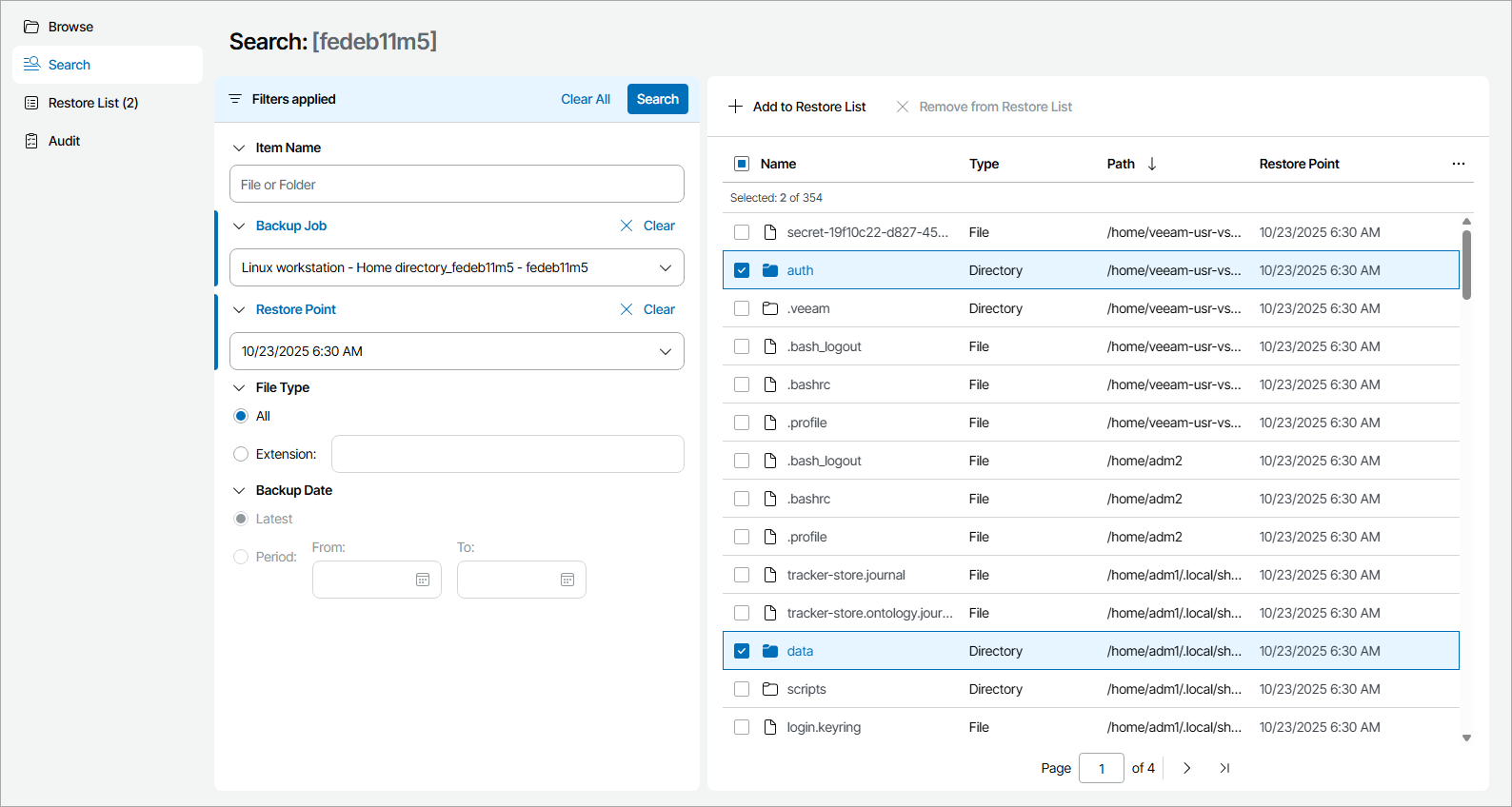 If the fields in the Search tab are not specified, the search results will include backed up items for all restore points of all configured backup jobs.