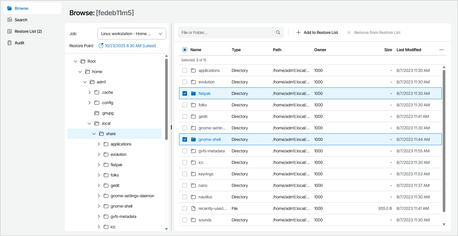 - In the Backup Job and Restore Point lists, select the backup job and the restore point from which you want to restore files.