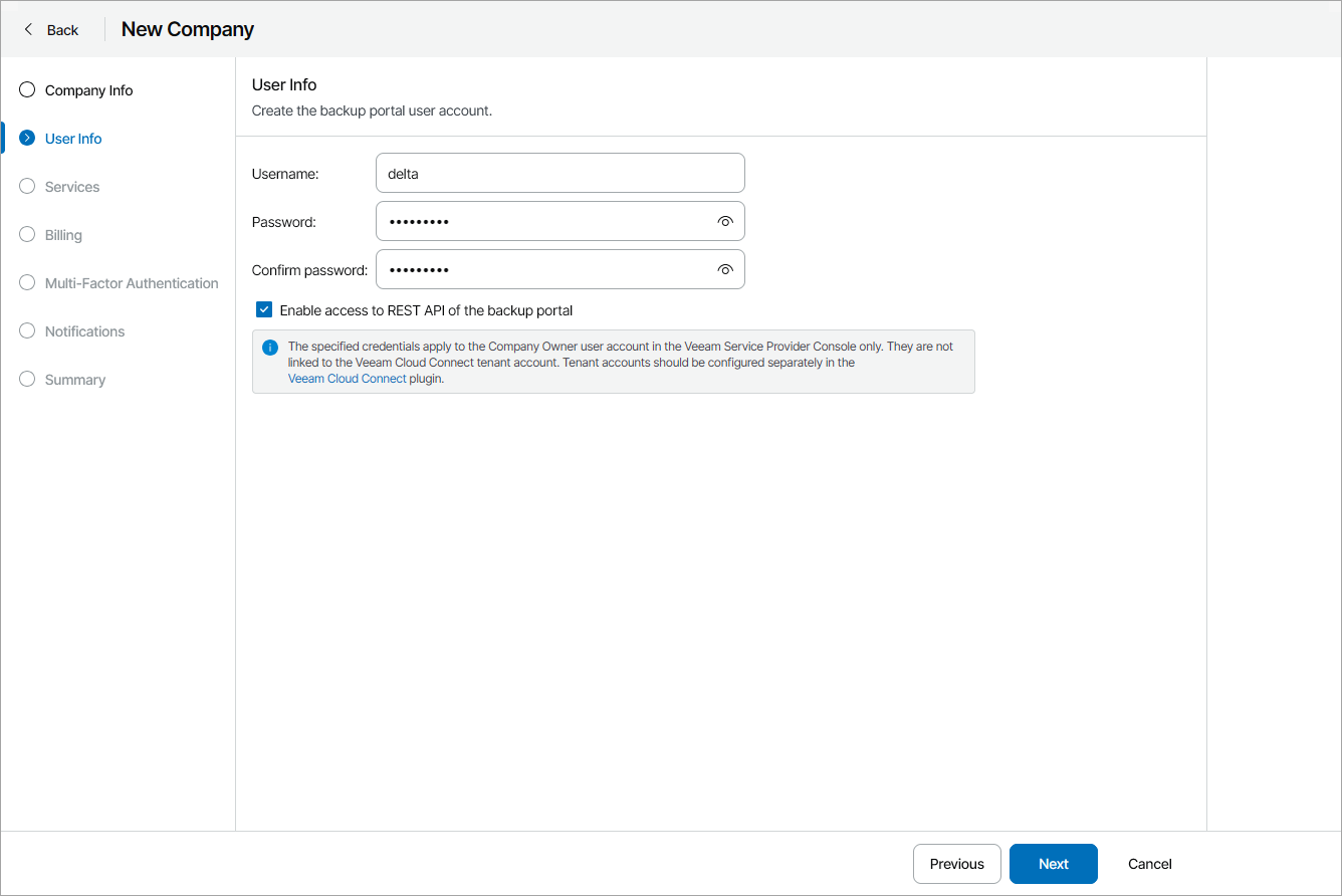For details on creating companies in Veeam Service Provider Console, see Creating Companies.