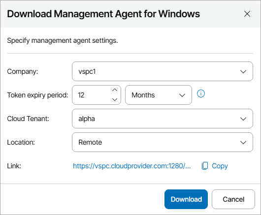 To copy the management agent setup file link from Veeam Service Provider Console: