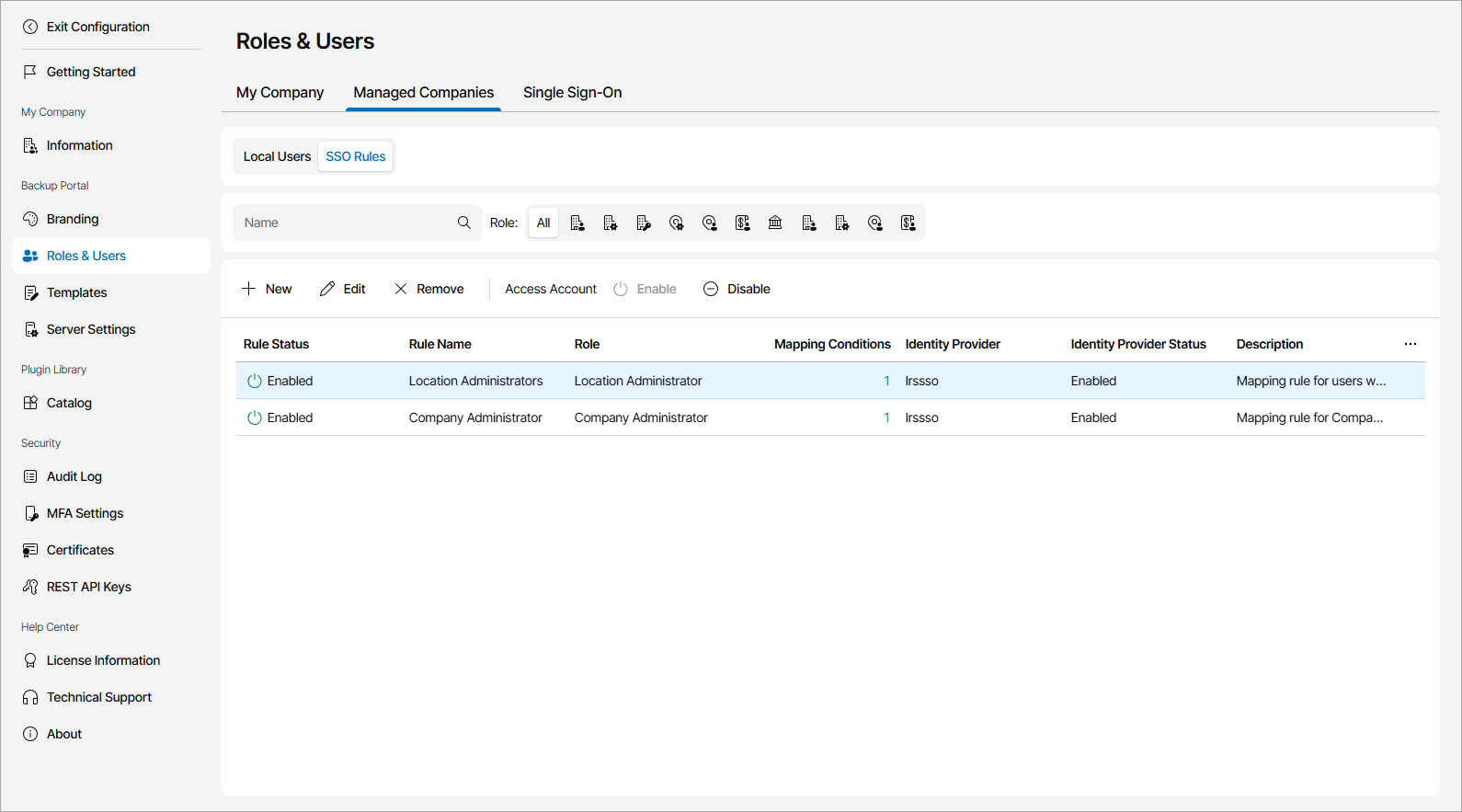 - On the My Company or Managed Companies tab, navigate to SSO Rules.