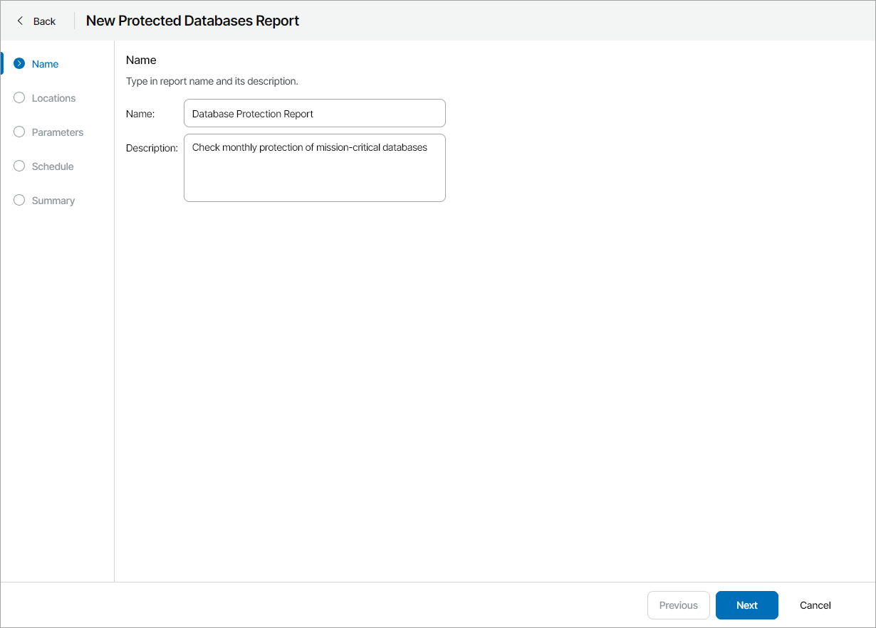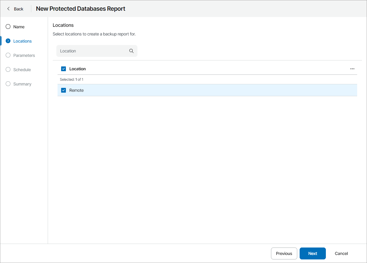 By choosing a location you can limit the scope of the report: only databases that belong to the chosen locations will appear in the report.