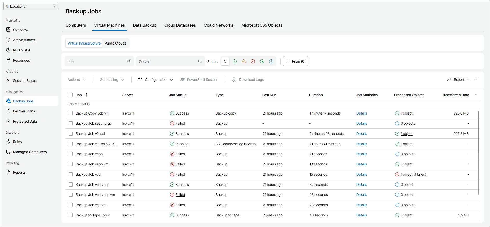 - Status — limit the list of jobs by the result of the latest job session (Success, Warning, Failed, Running, Information).