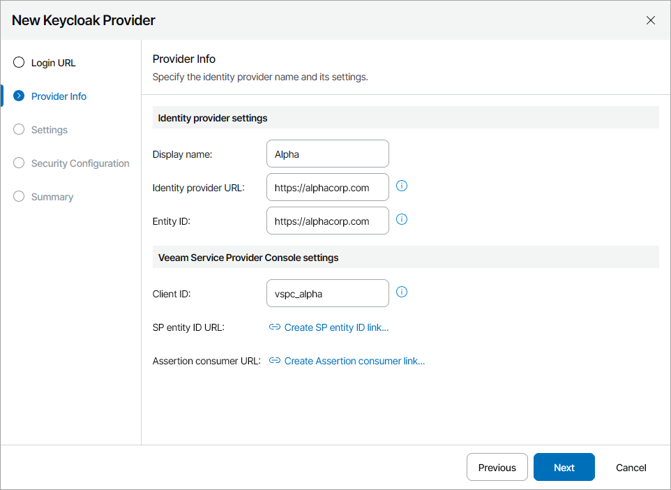 SAML authentication requires SP to set up trust relationship with IdP. To do that in Veeam Service Provider Console, you must create an IdP configuration: