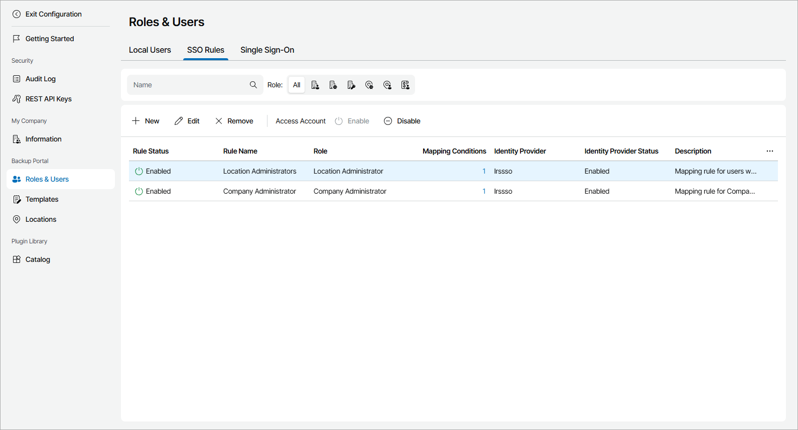 To prevent user identities created with a mapping rule from accessing Veeam Service Provider Console, you can disable that rule: