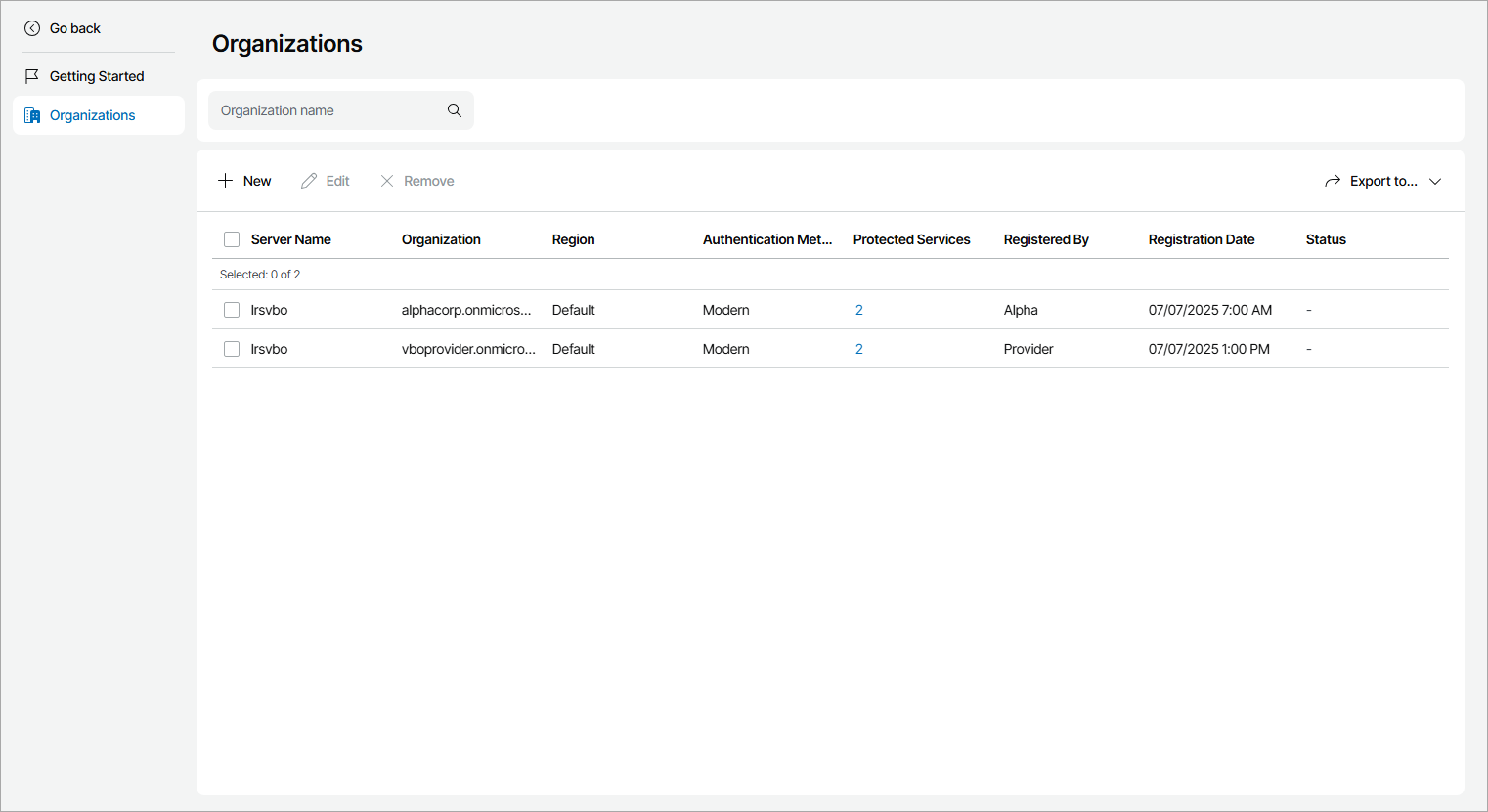 - Server Name — name of the Veeam Backup for Microsoft 365 server on which the organization is registered.