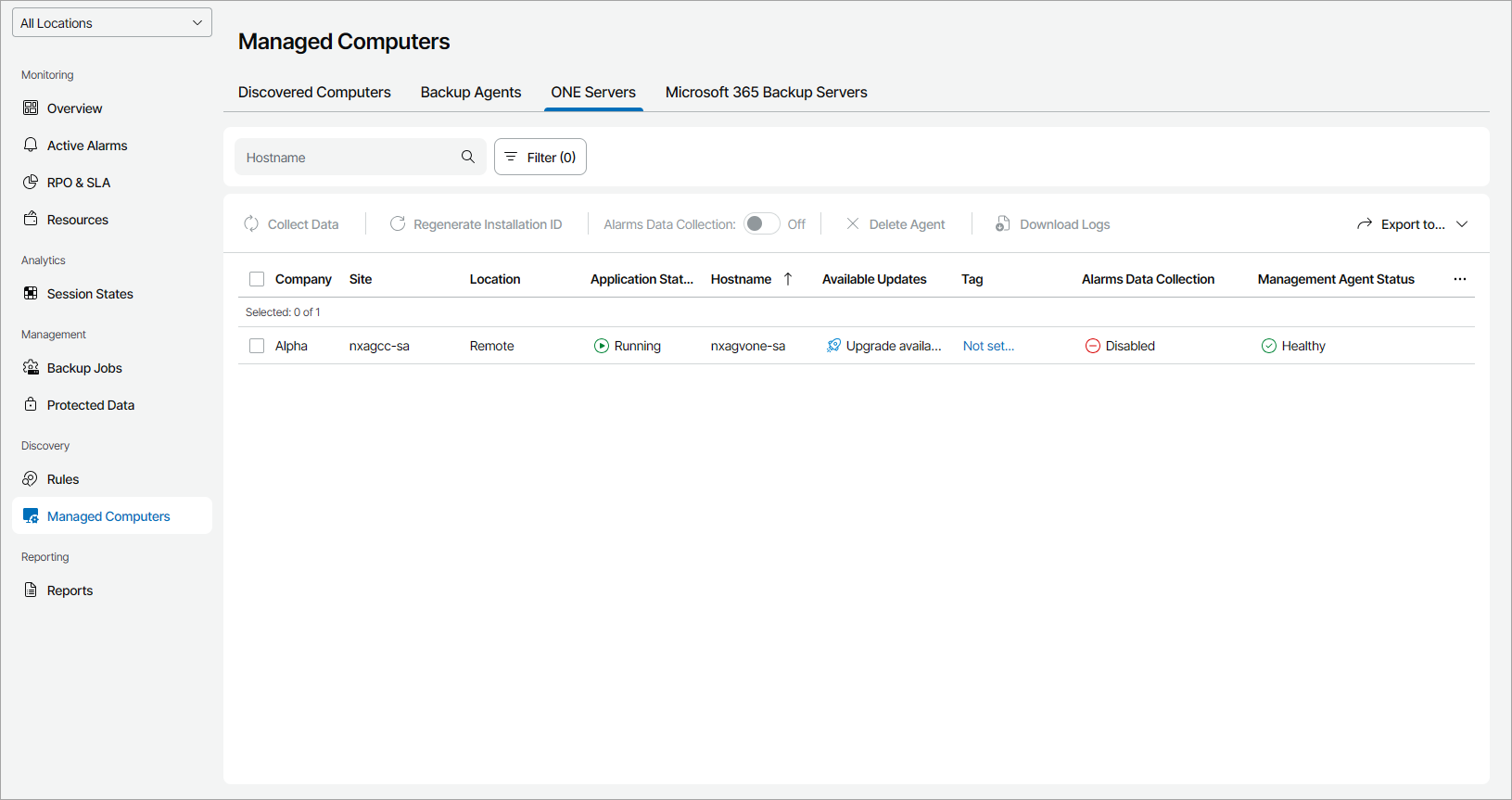 Veeam Service Provider Console will display a list of all managed Veeam ONE servers.