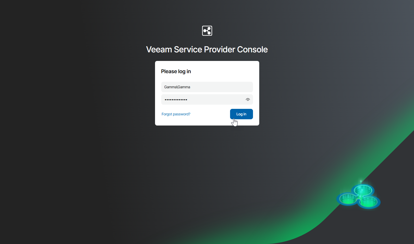 - In a web browser, navigate to the Veeam Service Provider Console URL. Note that Veeam Service Provider Console is available over HTTPS.
