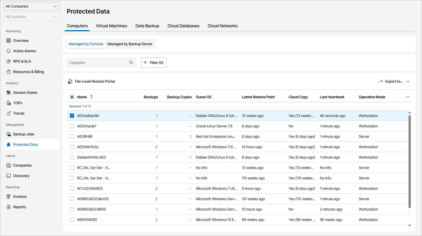 Veeam Service Provider Console will display a list of all client computers that have at least one finished Veeam backup agent job.