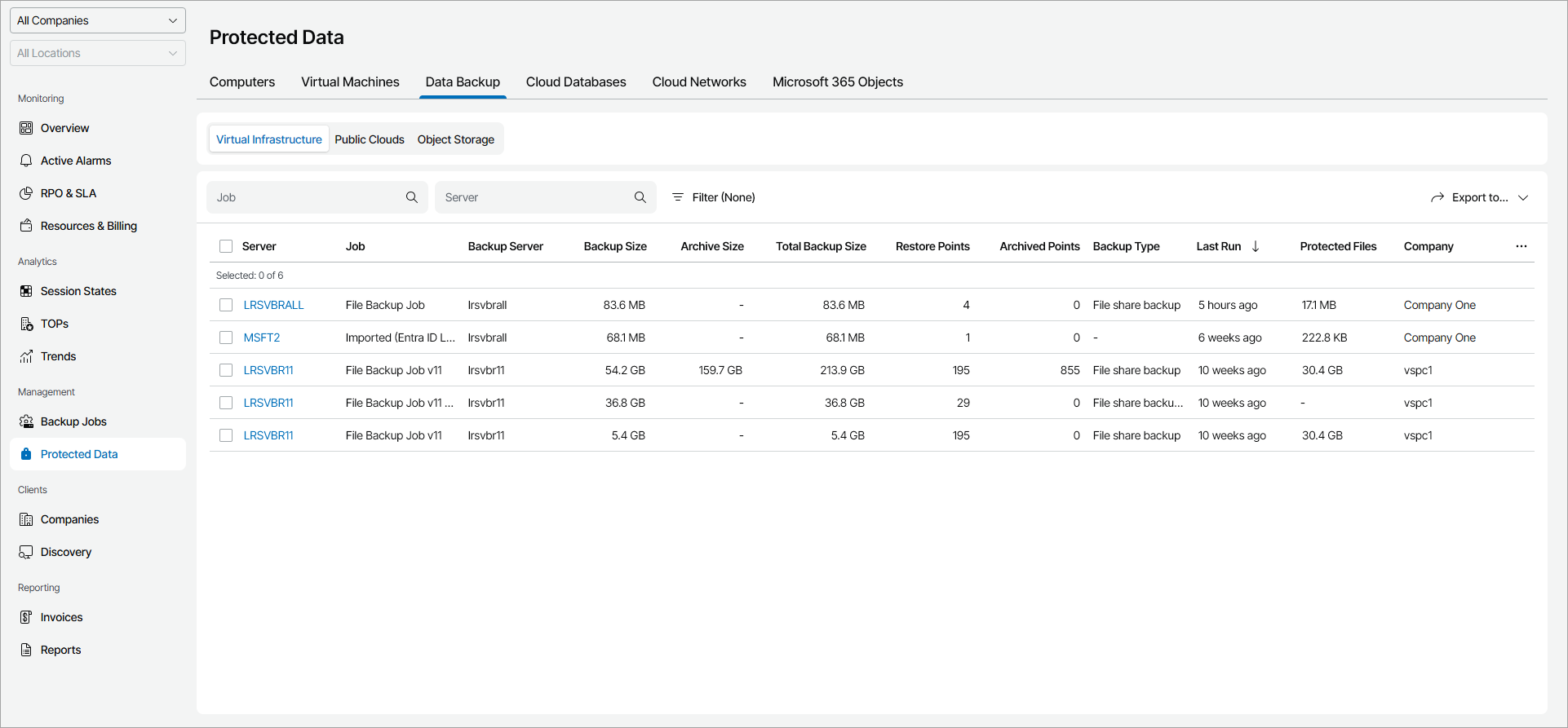 Veeam Service Provider Console will display a list of all file share servers protected by Veeam Backup & Replication.