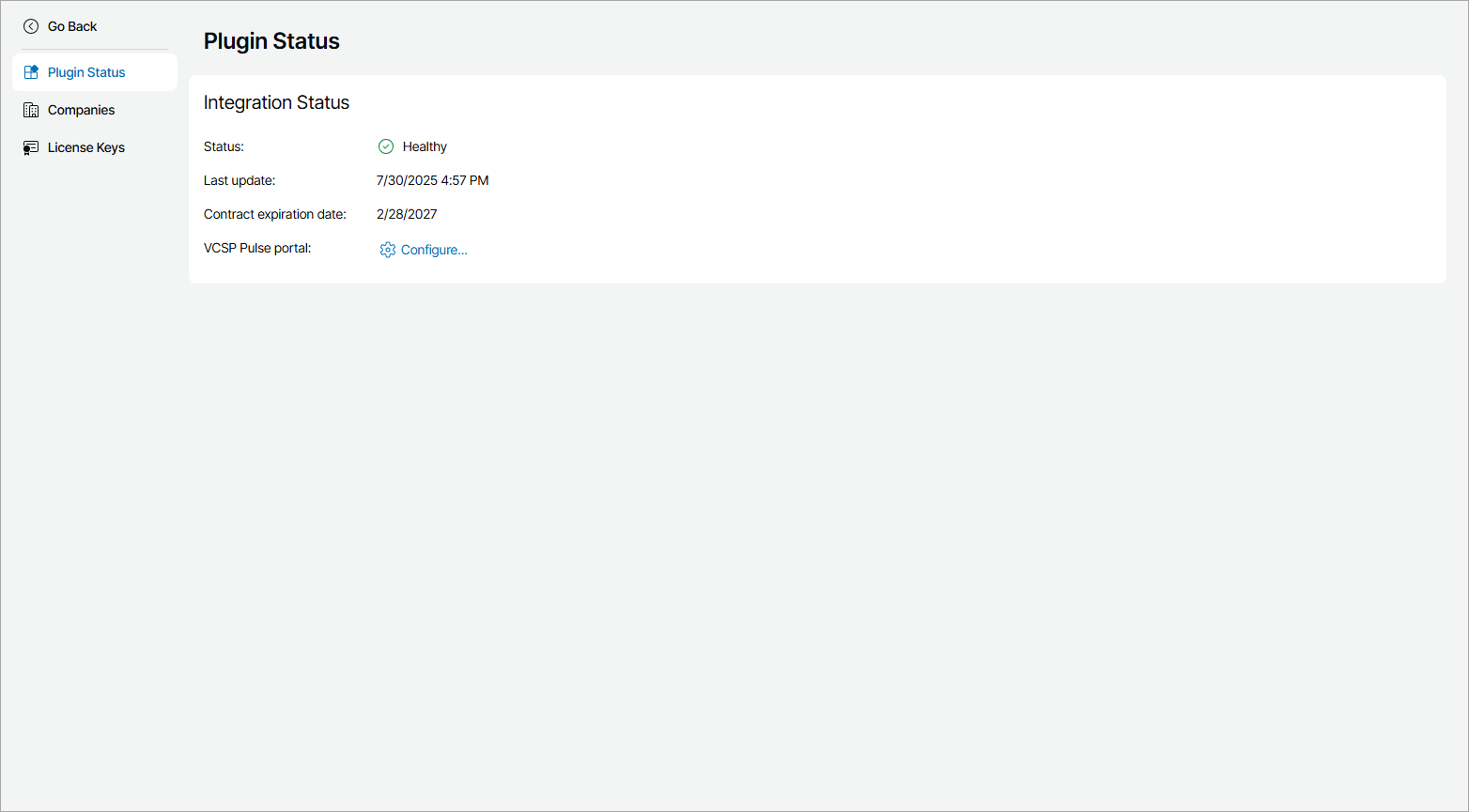 If you no longer want to manage VCSP Pulse license keys in Veeam Service Provider Console, you can remove plugin connection. After you disconnect VCSP Pulse plugin, company mapping and merge will be reset and you will not be able to assign VCSP Pulse license keys to managed products. Licenses installed on managed products before the plugin disconnection will not be affected.