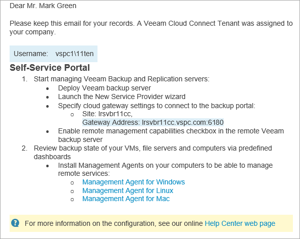 After you create a new cloud tenant and map it to a Veeam Service Provider Console company, you can send a welcome email message to users in this company.