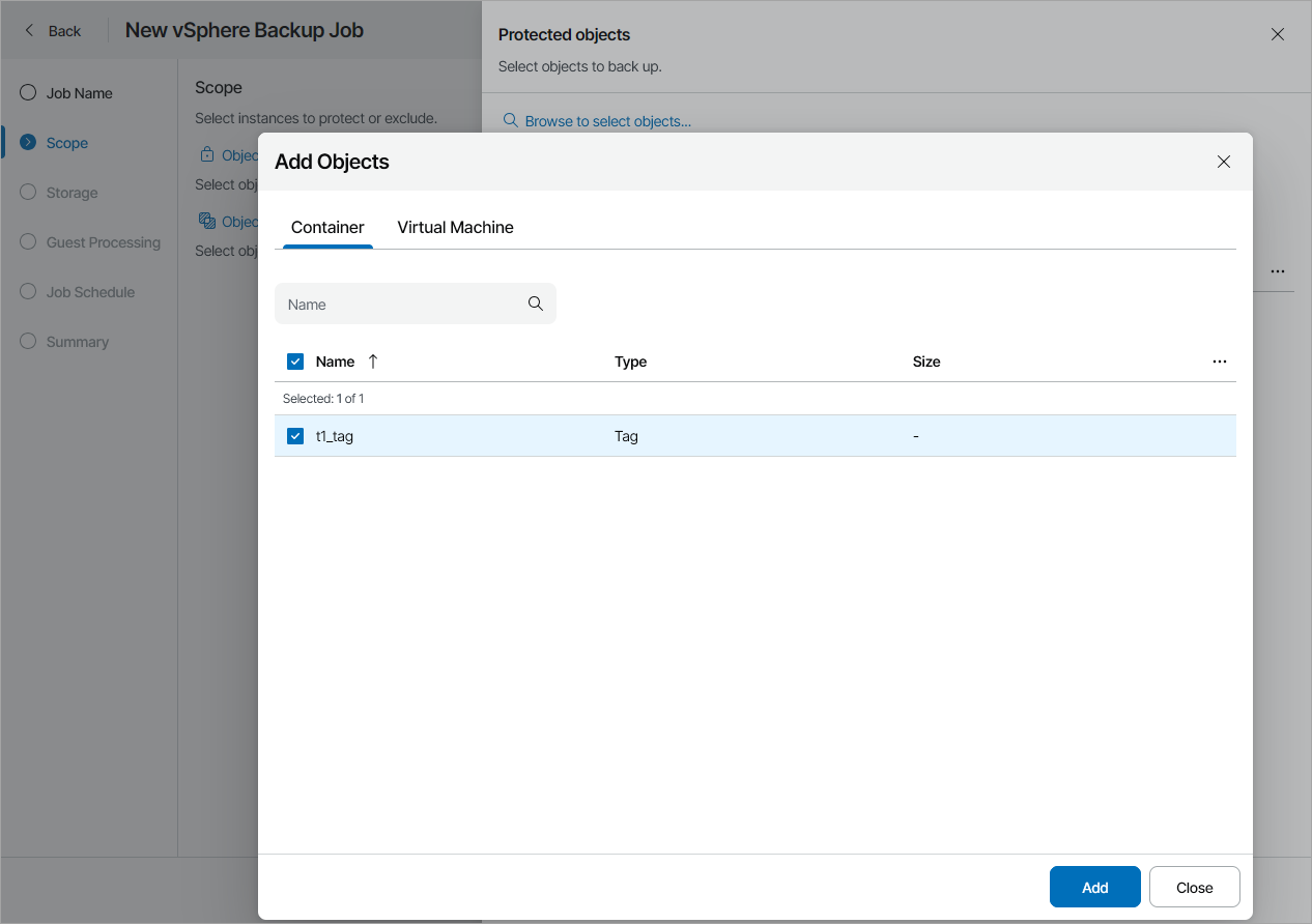 3. In the Add Objects window, specify objects that you want to include in the backup scope: