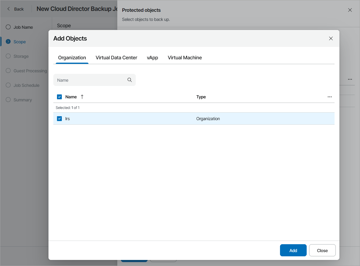 3. In the Add Objects window, specify objects that you want to include in the backup scope: