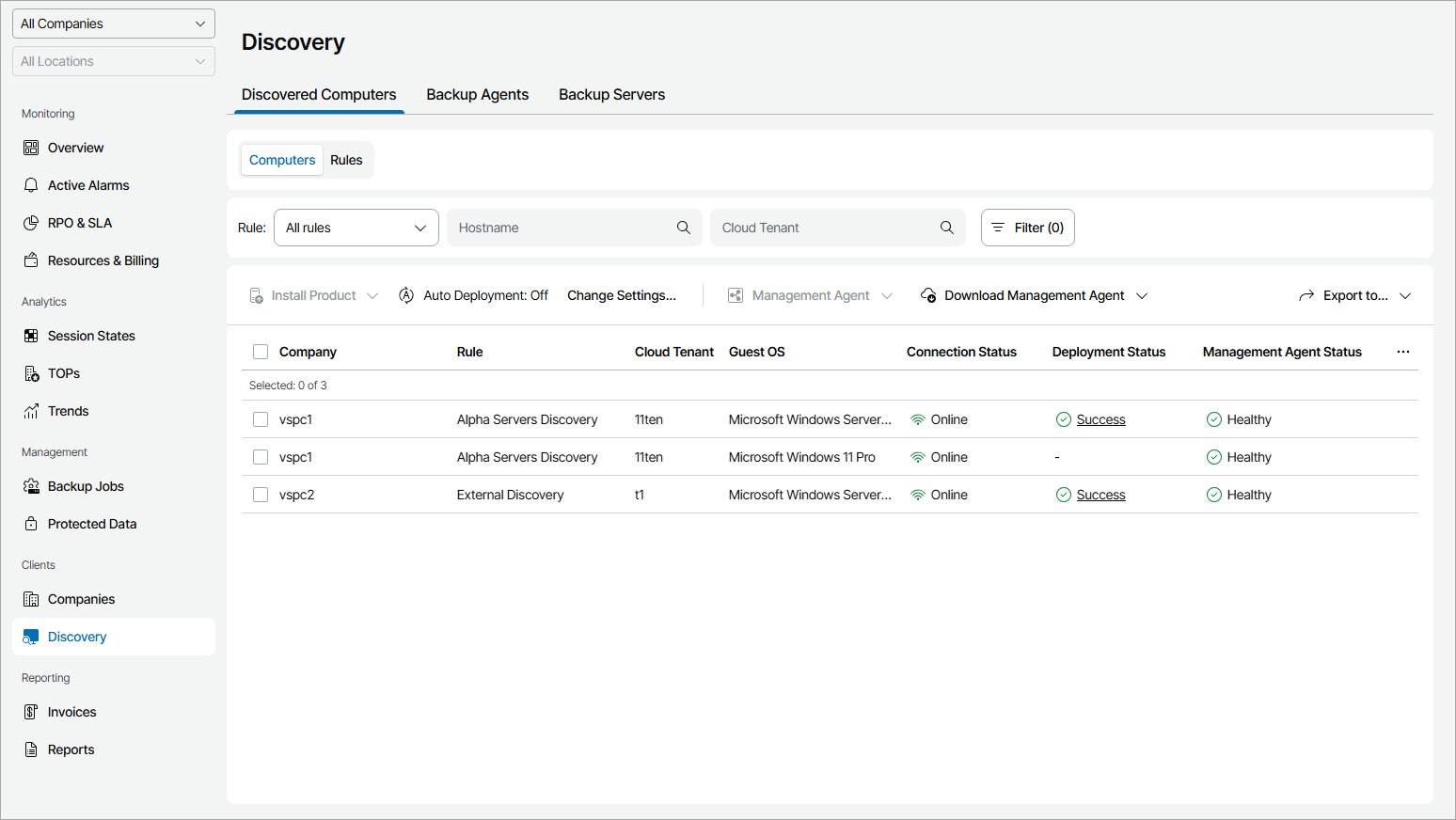 - In the menu on the left, click Discovery (for Service Provider Global Administrator, Service Provider Administrator) or Managed Computers (for Service Provider Operator, Service Provider User).