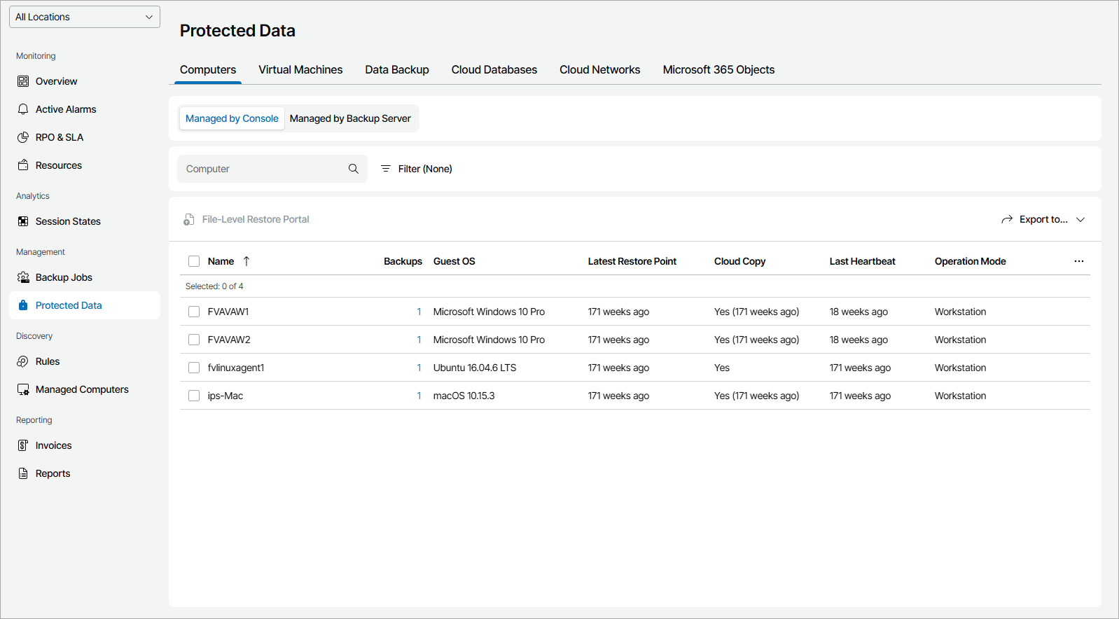 Veeam Service Provider Console will display a list of all managed computers that have at least one finished Veeam backup agent job.