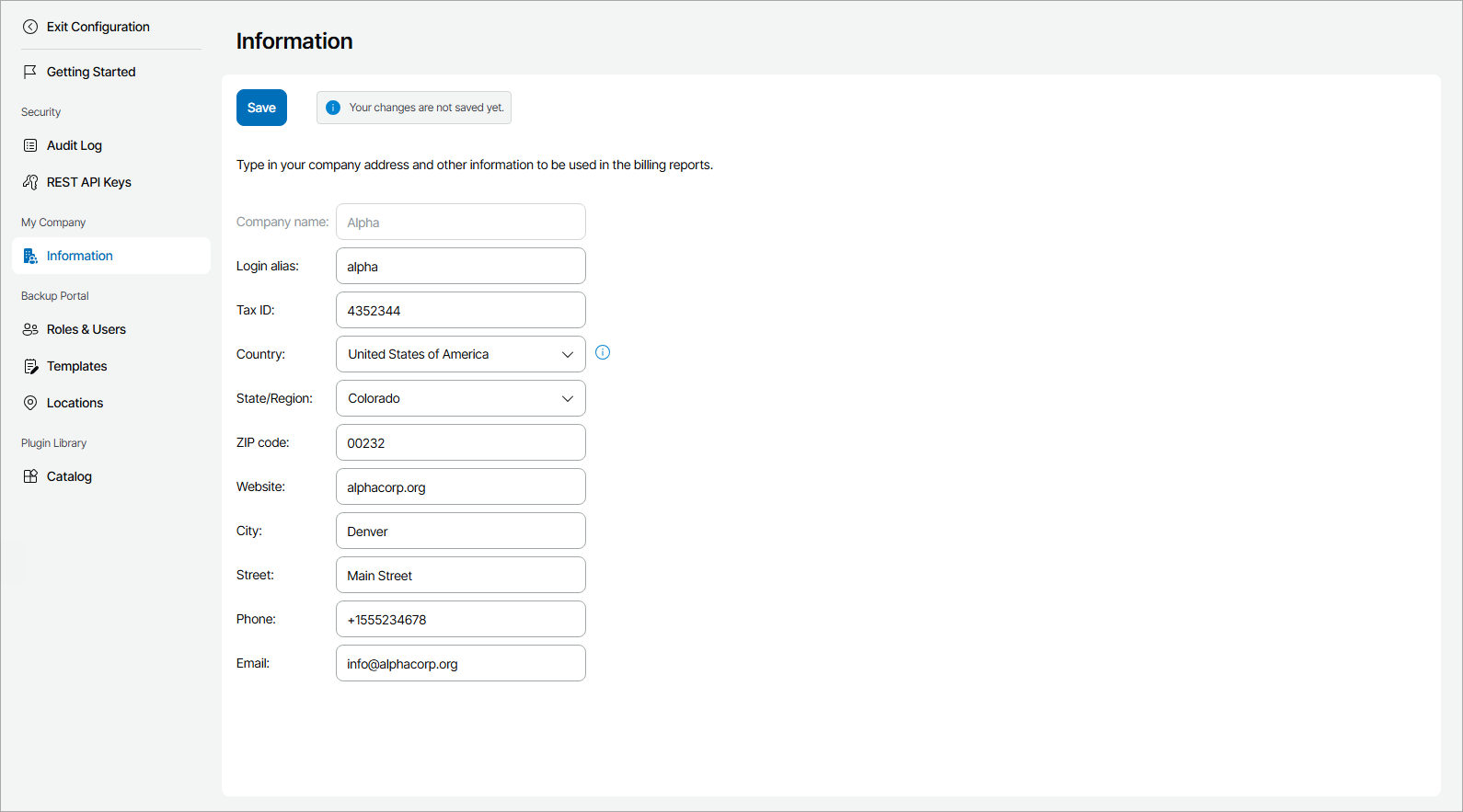 Some information in the company profile is populated by the Veeam Service Provider Console Portal Administrator, when a company account is registered. You must check provided details and fill the remaining information in the company profile.