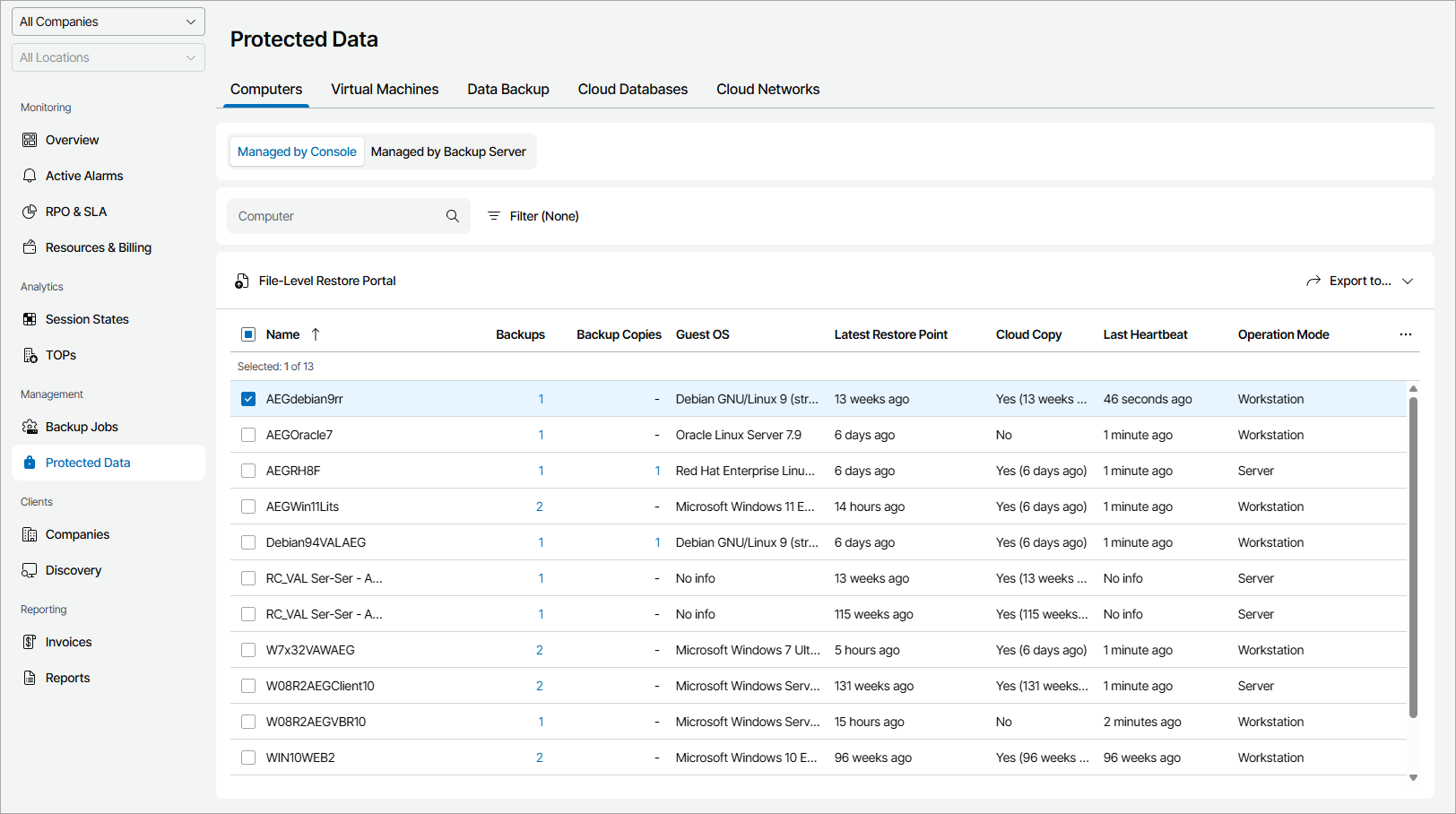 Veeam Service Provider Console will display a list of all client computers that have at least one finished Veeam backup agent job.