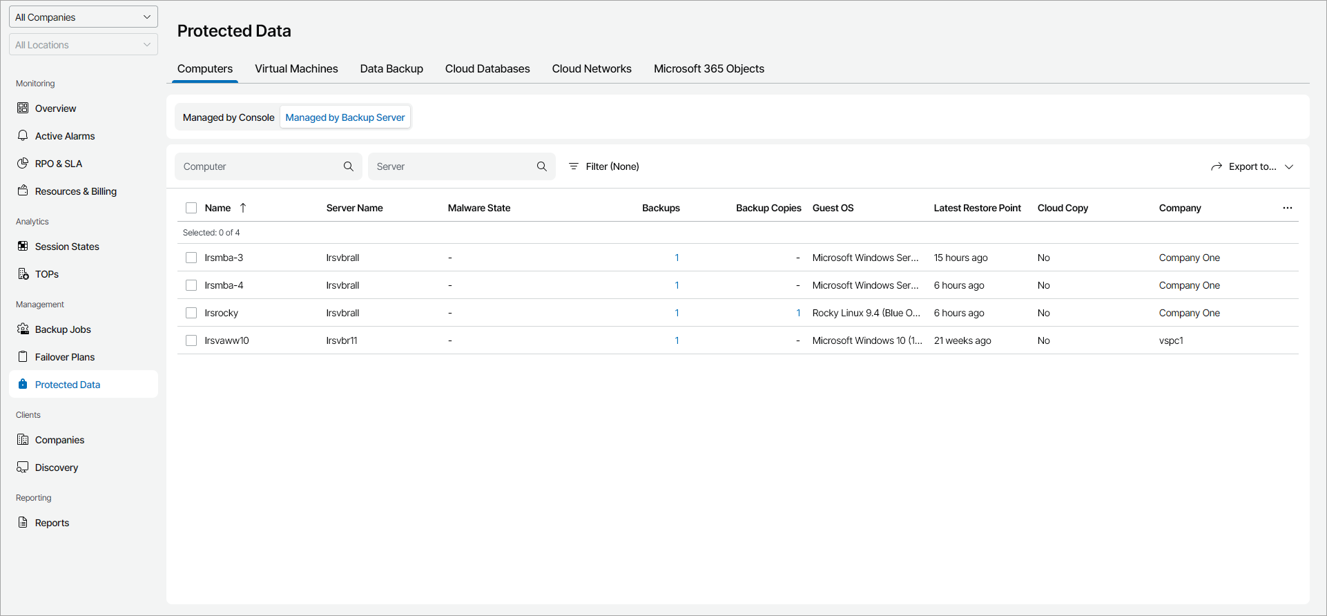 Veeam Service Provider Console will display a list of all managed Veeam backup agents.