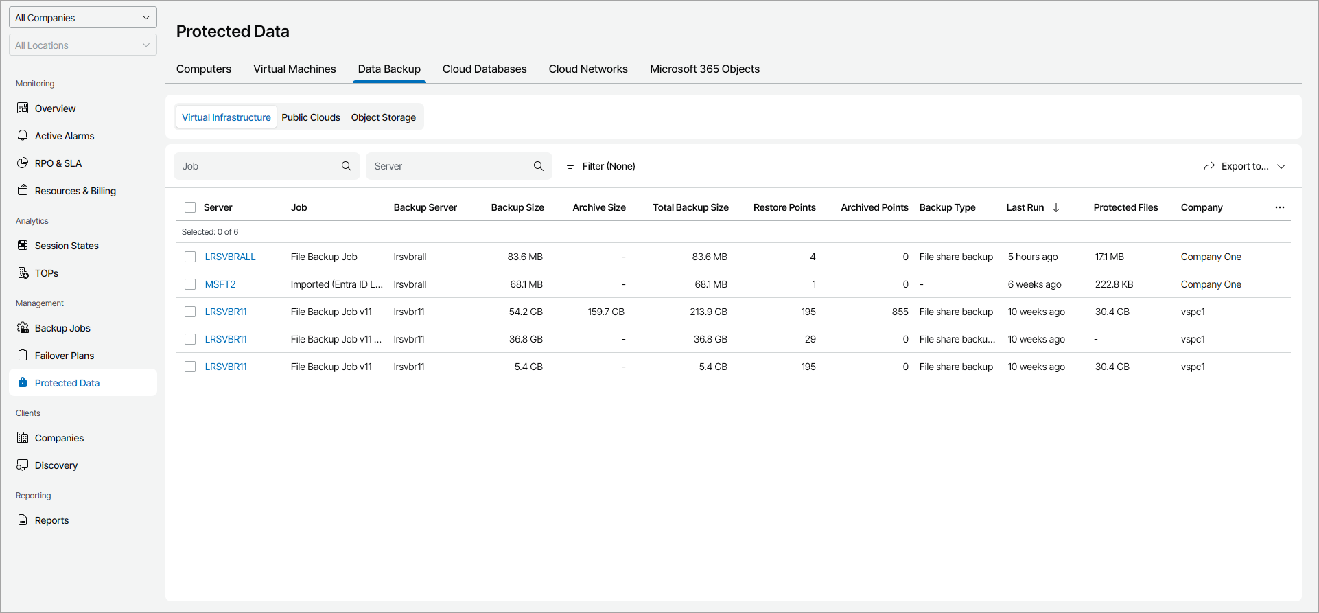 Veeam Service Provider Console will display a list of all file share servers protected by Veeam Backup & Replication.