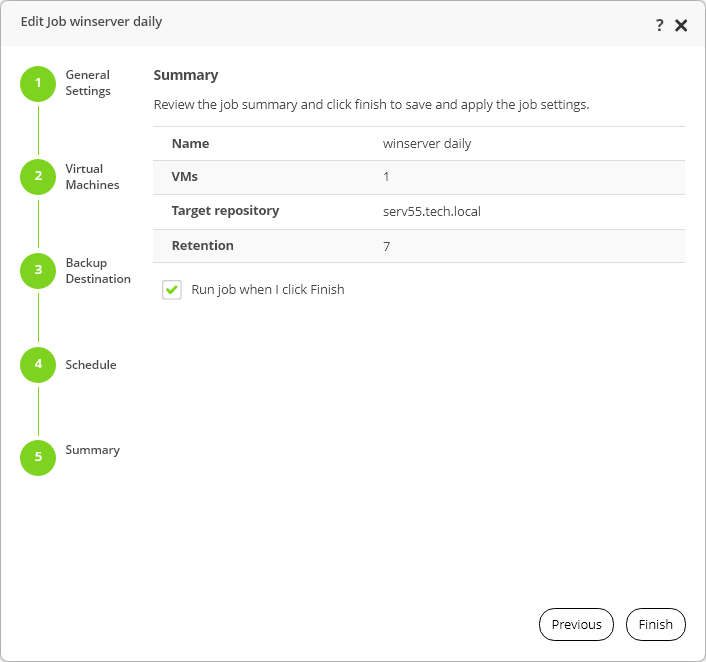 At the Summary step of the wizard, complete the procedure of backup job configuration.